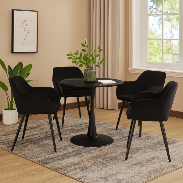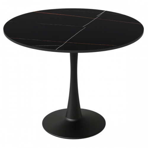 Круглий стіл з керамічною стільницею та металевою основою Ø90 см Тюльпан С чорний мармур