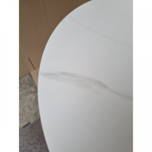 Журнальний столик з металевою основою та керамічною стільницею, малюнок мармур. Цей стильний журнальний столик поєднує в собі сучасний дизайн, високу функціональність та довговічність. Завдяки оригінальній металевій основі з фактурною поверхнею він стає яскравим акцентом у будь-якому інтер’єрі — від мінімалізму до сучасної класики. Керамічна кругла стільниця діаметром 50 см, товщина стільниці 12 мм і має гладку, стійку до подряпин та високих температур поверхню. Вона не вбирає рідину, легко очищується та зберігає первинний вигляд навіть за активного використання. Висота столика 61 см робить його ідеальним рішенням для вітальні, зони відпочинку, спальні або лаунж-зони. Він зручний для розміщення напоїв, декору, книг, а також може використовуватися як приставний столик біля дивана чи крісла. Розмір столику: діаметр 50 см, висота 61 см.