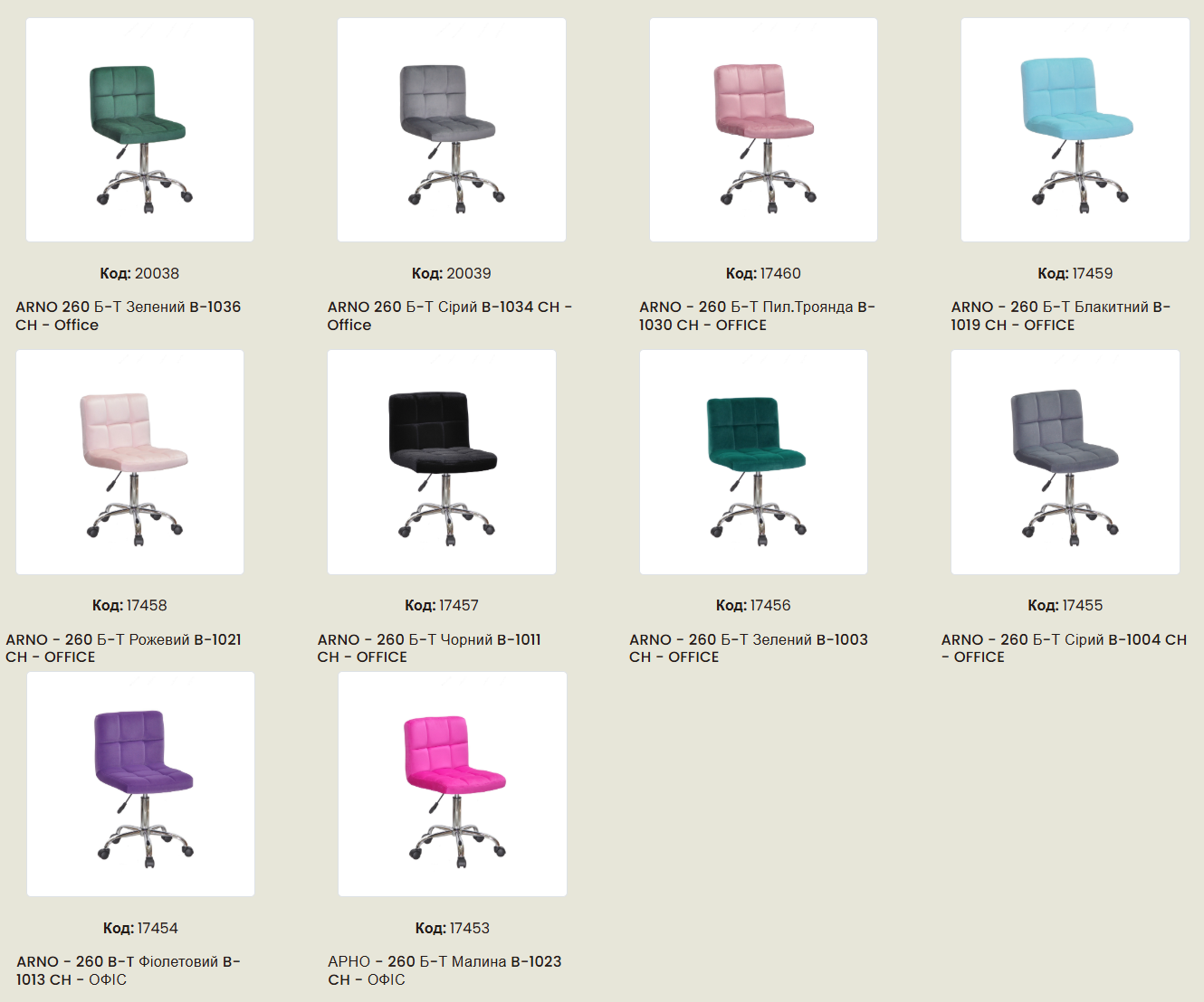 Крісло Арно Арм Офіс з поворотним механізмом і регулюванням висоти за допомогою газового ліфта. Стілець має дизайн унікальної геометрії, який легко впишеться в інтер'єр Вашого будинку, апартаментів, офісу, салону краси, перукарні, бару, кафе, ресторану, готелю. За стилем крісло, з легкістю, інтегрується, як в інтер'єр у стилі лофт (loft), так і в інтер'єри в стилях модерн і hi-tech.