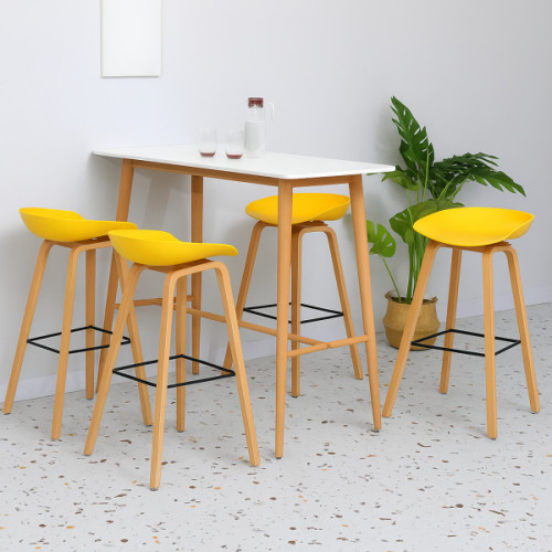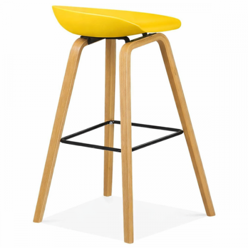 Стілець барний високий, табурет дизайнерський, сидіння пластикове матеріал поліпропілен, основа з 4 металевими ніжками, епоксидне покриття під дерево, застосування в приміщенні або на вулиці (захищені від сонця та дощу), розміри: ширина сидіння 42 см, глибина сидіння 43 см, висота 85 см, висота посадки 75 см. Кількість у коробці 4 од.