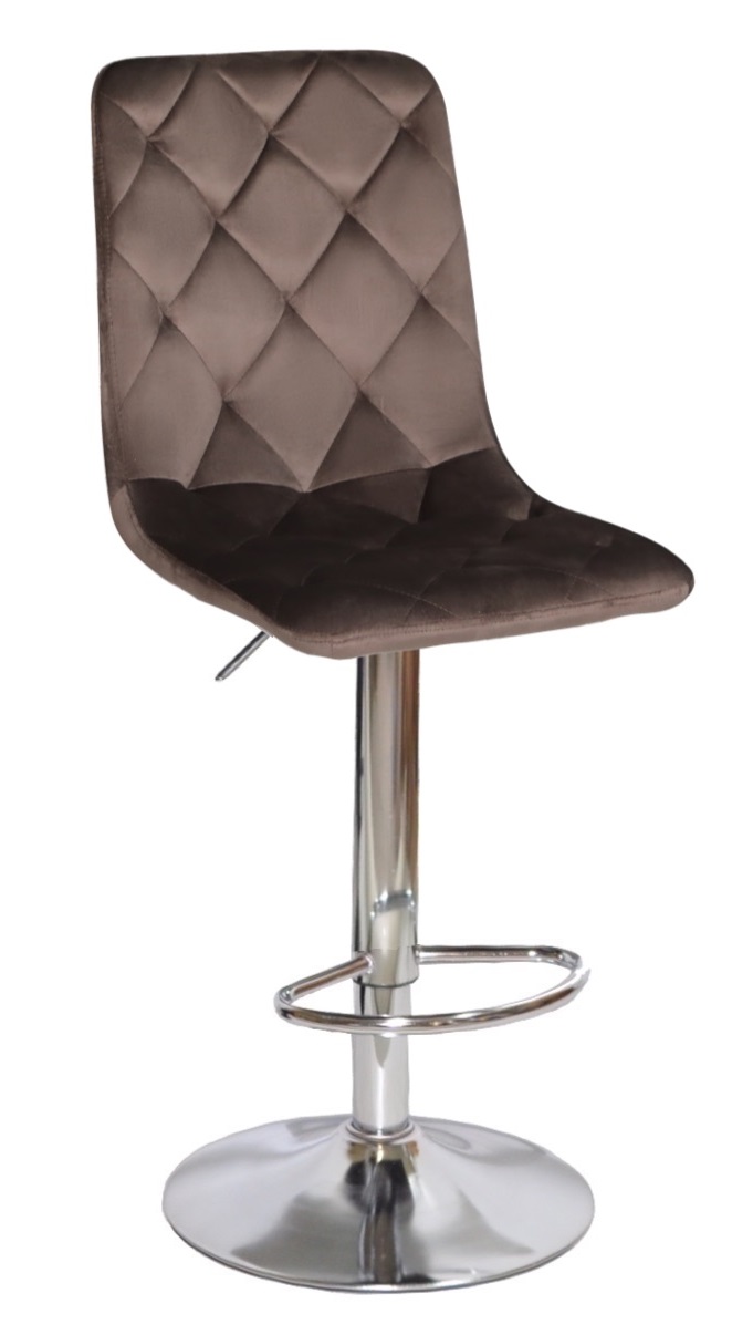 Сучасний барний стілець Chilli с м'якою оббивкою з якісної меблевої велюрової тканини й екошкіри (на вибір), простроченого ромбами, на металевій опорі з поворотно під'йомним механізмом. Барний стілець Чіллі — це проста, але ретельно продумана модель, яка підходить до інтер'єрів у скандинавському стилі, у стилі модерн, лофт і мінімалізм. Сфера застосування барного стільця Chilli: високий стілець на ресепшений, стілець барний кухонний, барний стілець у кафе, у піцерію, у ресторан, у бісор, як стілець для майстра та клієнта в салон краси, а також, як акцентна дизайнерська деталь в інтер'єрі.