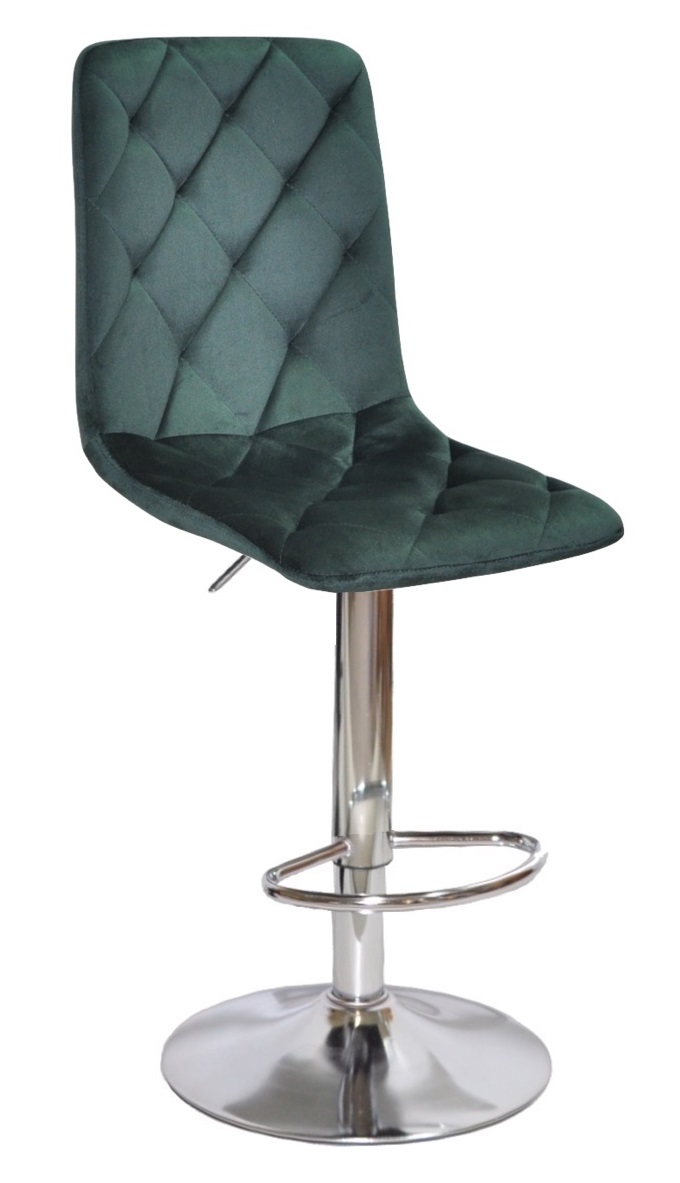 Сучасний барний стілець Chilli  с м'якою оббивкою з якісної меблевої велюрової тканини й екошкіри (на вибір), простроченого ромбами, на металевій опорі з поворотно під'йомним механізмом. Барний стілець Чіллі — це проста, але ретельно продумана модель, яка підходить до інтер'єрів у скандинавському стилі, у стилі модерн, лофт і мінімалізм. Сфера застосування барного стільця Chilli: високий стілець на ресепшений, стілець барний кухонний, барний стілець у кафе, у піцерію, у ресторан, у бісор, як стілець для майстра та клієнта в салон краси, а також, як акцентна дизайнерська деталь в інтер'єрі.