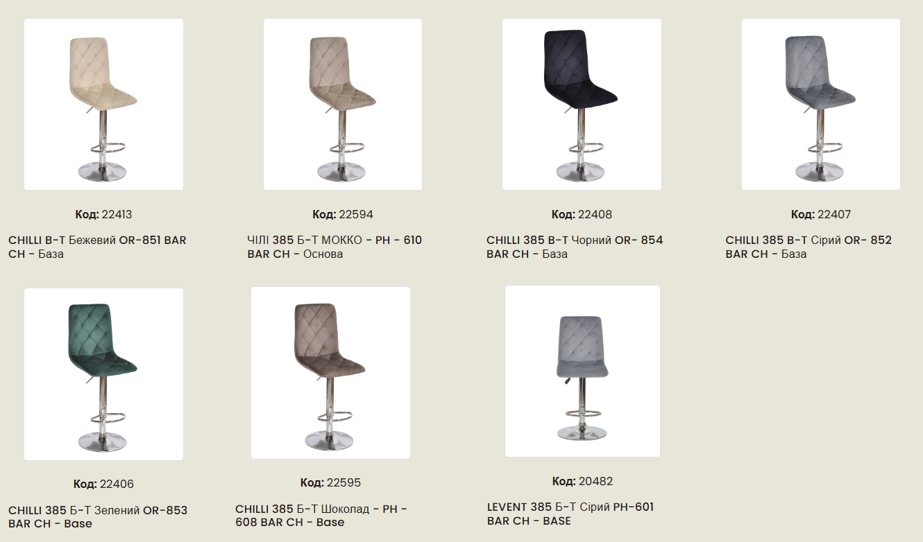 CHILLI LEVENT 385 Б-т сірий PH-601 BAR CH - BASE Барний Стілець/Чілі (ЧИЛИ)
