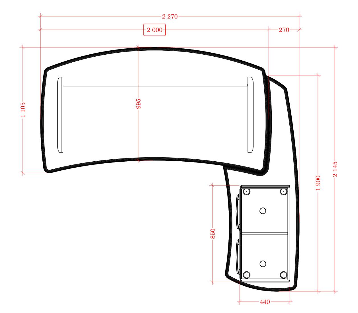 Розміри (Д x Ш x В): 1850 x 1704 x 760 мм