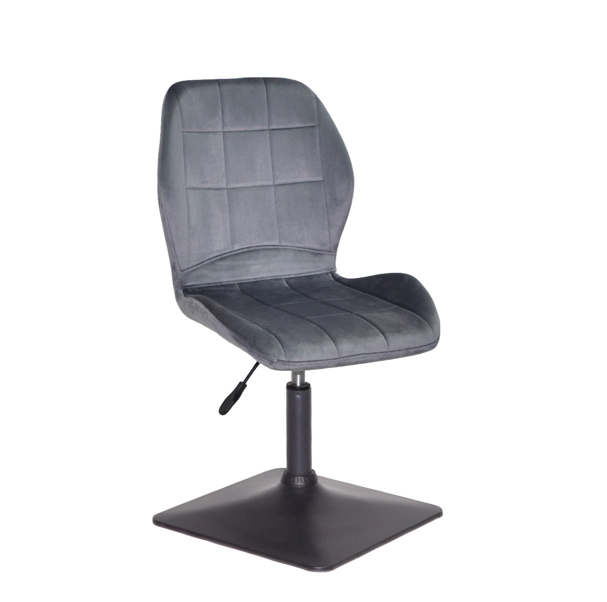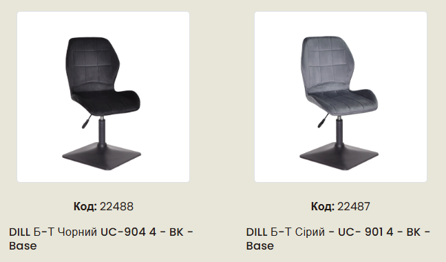 Поворотний стілець Dill – сучасна модель з металевою основою та функцією обертання, що поєднує стиль, комфорт та практичність.  База має стійку геометричну форму, що робить силует більш графічним та легко інтегрує стілець у сучасні кухні, студії чи комерційні простори. Надійна конструкція забезпечує стабільність та довговічність у повсякденному використанні. М'яке сидіння з комфортною спинкою обтягнуте велюром – доступні варіанти у сірому або чорному кольорі. Оббивка приємна на дотик і добре виглядає в інтер'єрі з будь-яким кольором стін та меблів. Основа, що обертається, забезпечує зручність посадки — не потрібно пересувати стілець, щоб сісти або встати.  Dill - зручний вибір для кухонного острова, обідньої зони з підвищеним столом або стильного офісного простору.
