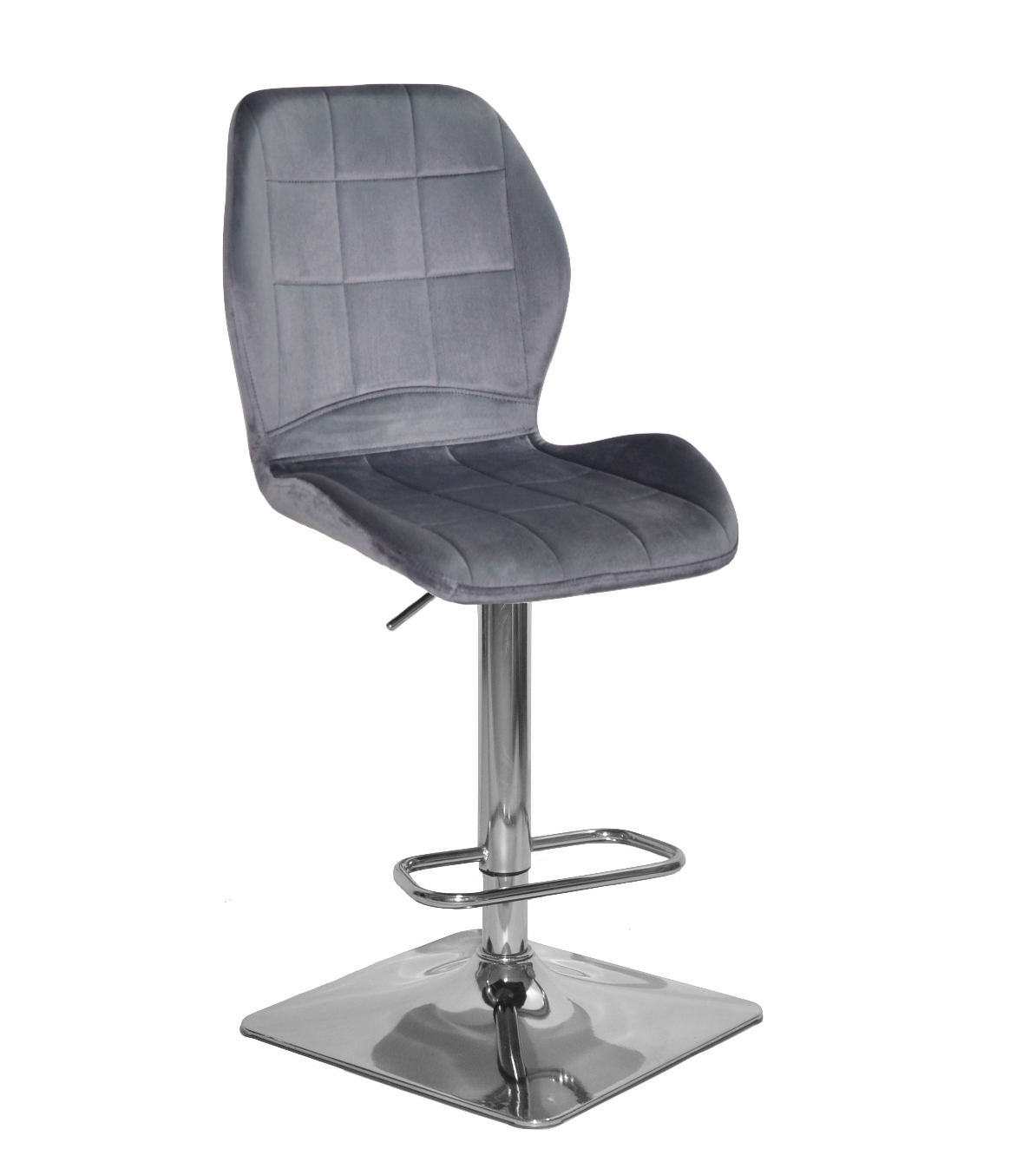 Барний стілець Dill на  металевій базі - ідеальний вибір для інтер'єрів, де важливим є стиль, комфорт і функціональність.  Завдяки механізму, що обертається, зручному сидінню з м'якою велюровою оббивкою (сірий або чорний колір) і практичною підставкою під ноги, модель чудово підходить для домашніх барів, кухонних островів, кафе, ресторанів, готелів, reception-зон і сучасних комерційних просторів.