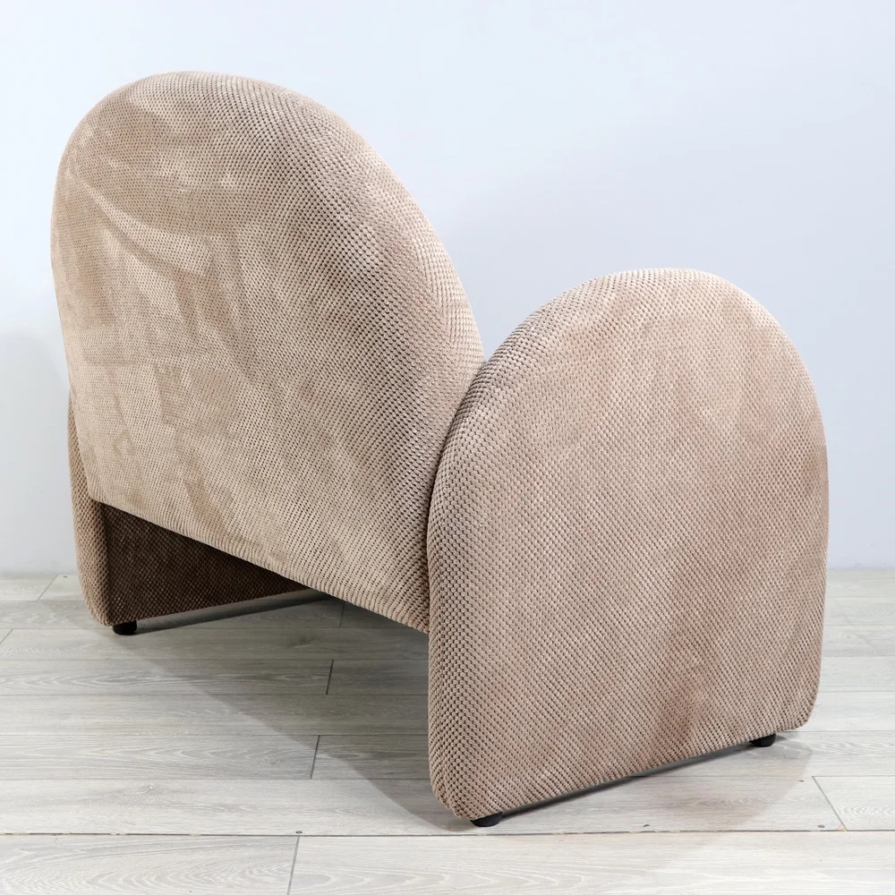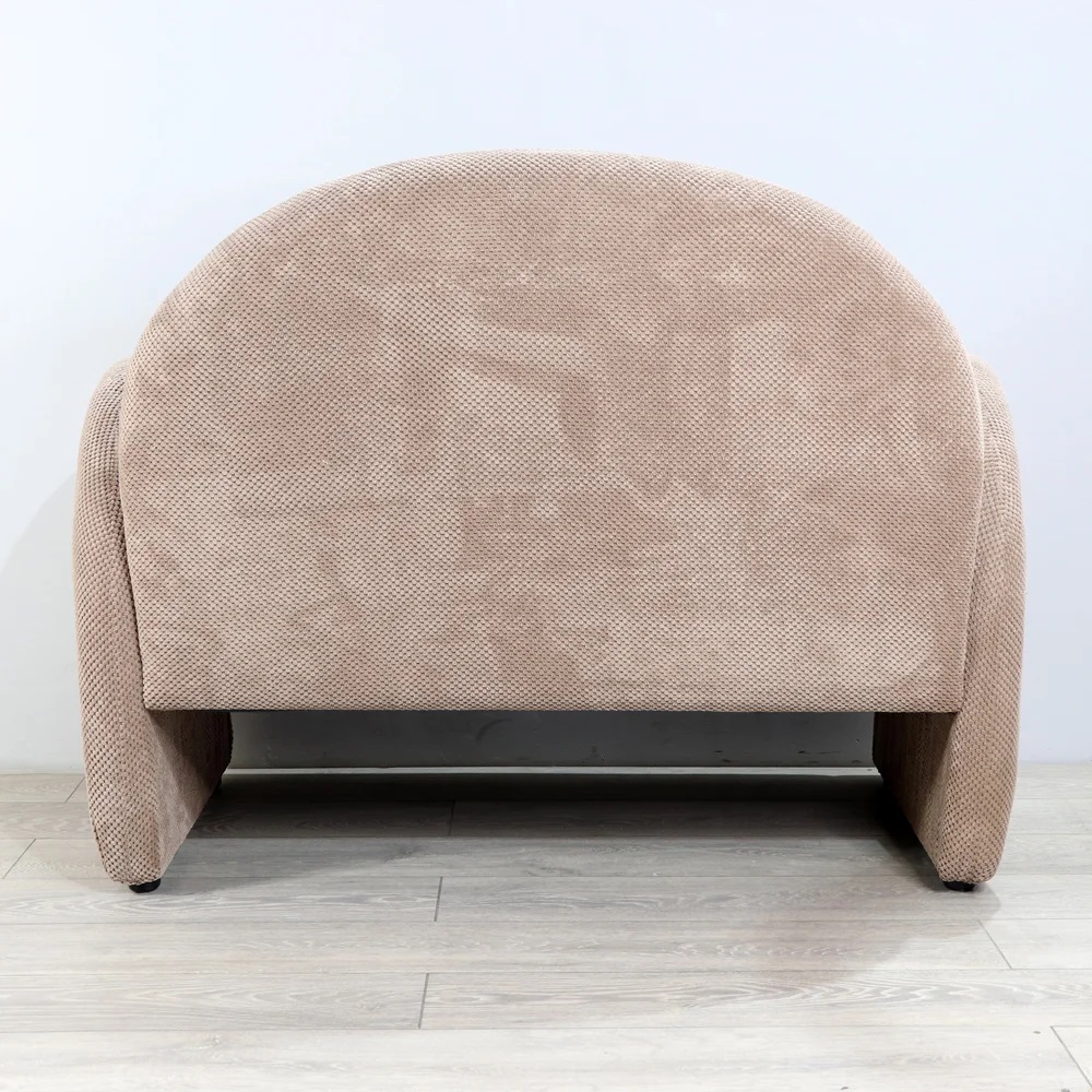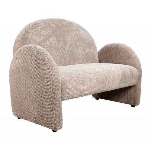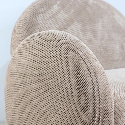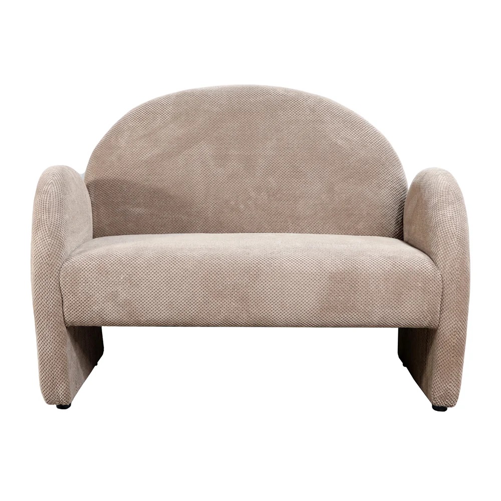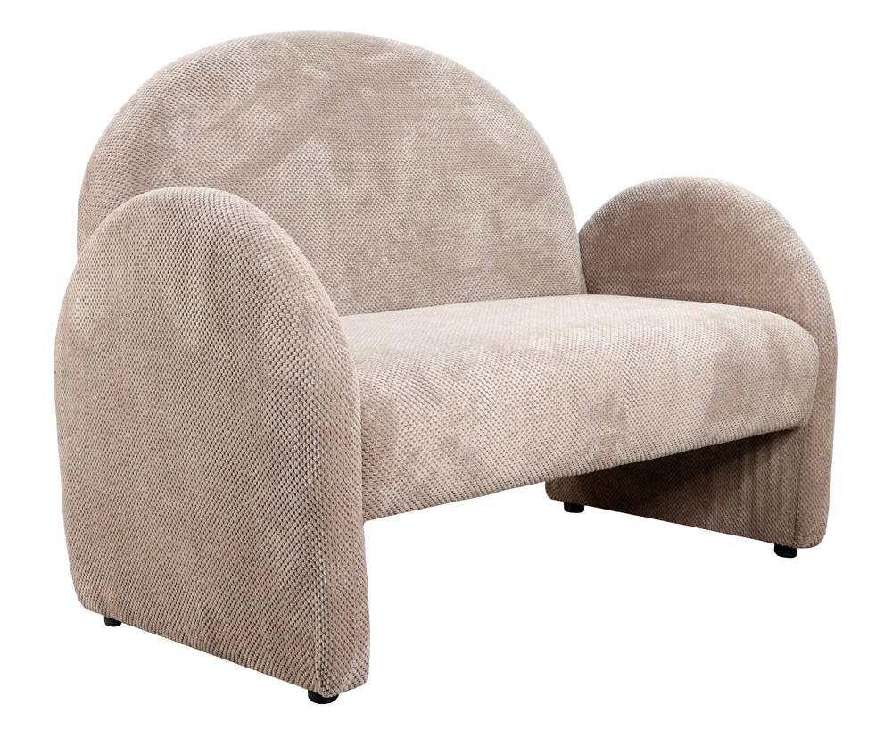 Округлі підлокітники та спинка створюють м’який, «обіймаючий» силует, а приховані ніжки забезпечують візуальну легкість конструкції. Посадка комфортна й досить глибока — ідеальна для відпочинку на двох.