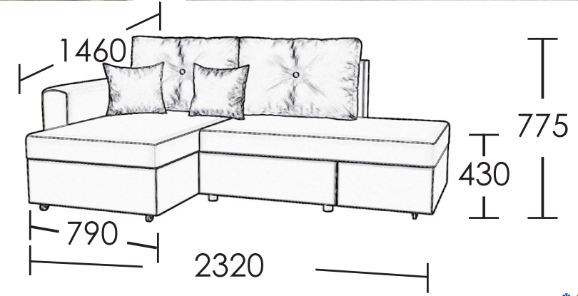 Розміри  дивана:Ширина 2320,Глибина 1460,Висота 775