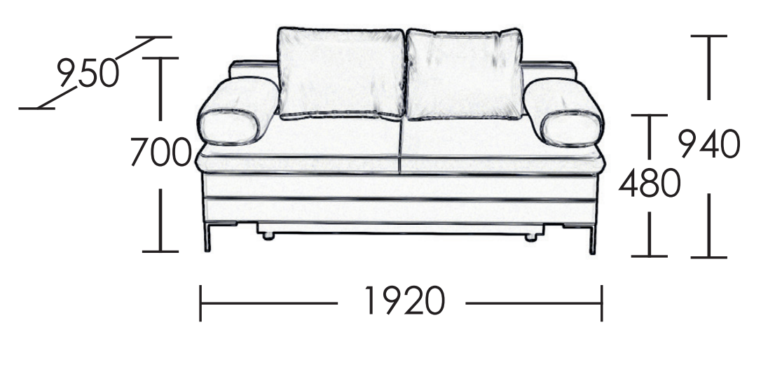 Диван Ілюзія  -  ширина х глибина х висота від підлоги до подушки  1920х950х940 мм;