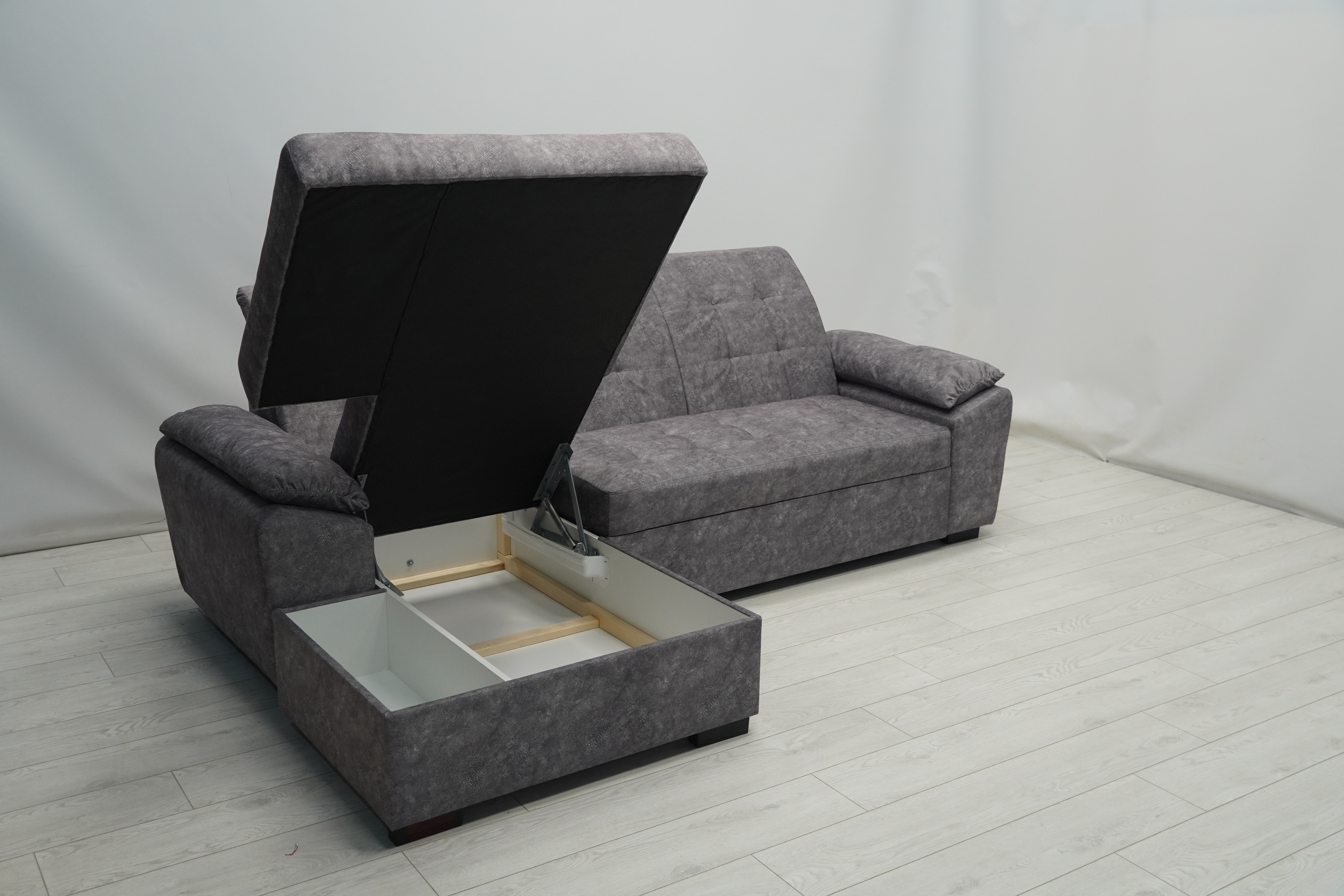 Каркас: деревина хвоя (бруски); ДСП; ДВП; ДВПО; фанера; пружини зиг-заг; металевий супорт;