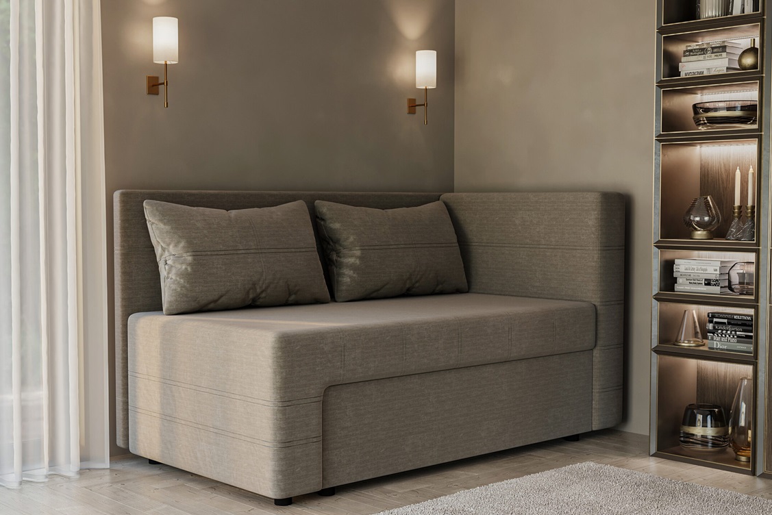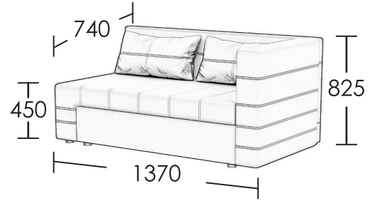 Диван виготовлений з цільної тканини.