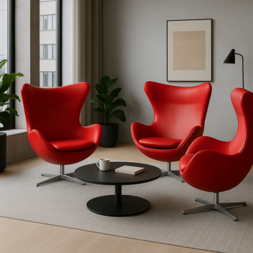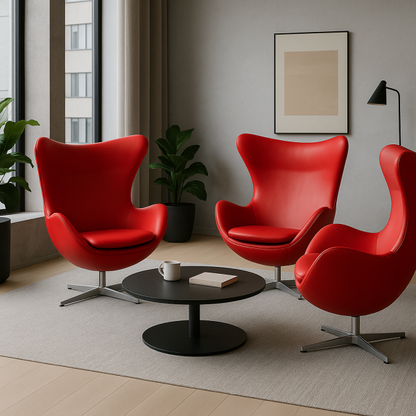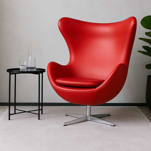 Елегантне та комфортне дизайнерське крісло Егг — ідеальне поєднання сучасного стилю, якості та зручності. Його продумана ергономіка та витончений дизайн гармонійно впишуться як в офісний простір, так і в домашній інтер’єр. Матеріал оббивки високоякісна екошкіра, приємна на дотик, стійка до зношування та легка у догляді, наповнювач це щільний пінополіуретан, регулюється кут нахилу спинки у двох положеннях — для роботи та відпочинку, а міцна хрестовина з полірованого алюмінію додає блиску та надійності конструкції. Крісло обертається навколо своєї осі, висота сидіння фіксована без підйомного механізму. Розмір крісла: ширина спинки вгорі 80 см, ширина по підлокітникам 77 см, висота спинки 69 см, висота від підлоги до сидіння 44 см, висота загальна від підлоги до верху спинки 110 см.