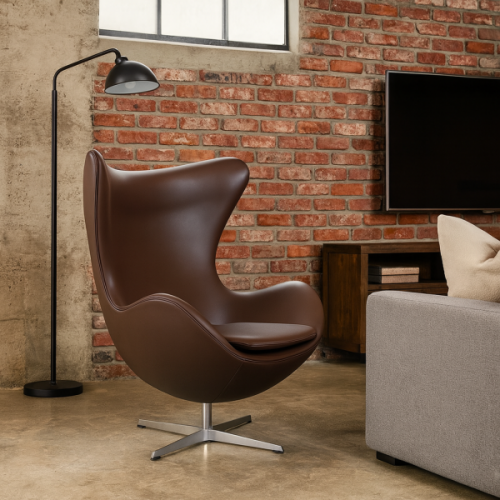 Елегантне та комфортне дизайнерське крісло Егг — ідеальне поєднання сучасного стилю, якості та зручності. Його продумана ергономіка та витончений дизайн гармонійно впишуться як в офісний простір, так і в домашній інтер’єр. Матеріал оббивки високоякісна екошкіра, приємна на дотик, стійка до зношування та легка у догляді, наповнювач це щільний пінополіуретан, регулюється кут нахилу спинки у двох положеннях — для роботи та відпочинку, а міцна хрестовина з полірованого алюмінію додає блиску та надійності конструкції. Крісло обертається навколо своєї осі, висота сидіння фіксована без підйомного механізму. Розмір крісла: ширина спинки вгорі 80 см, ширина по підлокітникам 77 см, висота спинки 69 см, висота від підлоги до сидіння 44 см, висота загальна від підлоги до верху спинки 110 см.