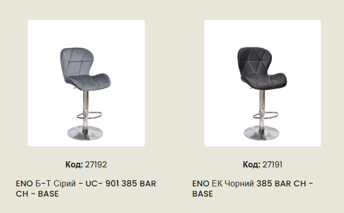 Барний стілець ENO з металевою базою, з поворотним механізмом та регулюванням висоти за допомогою газового ліфта. Дизайн легко впишеться в інтер'єр Вашого будинку, апартаментів, офісу, салону краси, перукарні, ресторану, готелю.