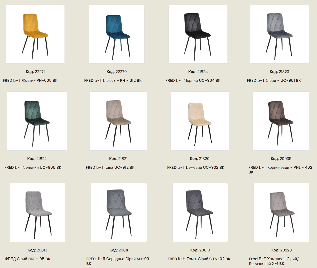Якщо Ви в пошуках стильних і комфортабельних стільців, крісел високої якості та за низькою ціною - Вам безумовно пощастило, адже ми є представниками тієї продукції, що безсумнівно Вам підійде! У нас великий асортимент меблів для Вашого будинку, кафе і ресторану, бару! Наші меблі є універсальними, оскільки вони ідеально впишуться і матимуть стильний вигляд у будь-якому інтер'єрі. А наша компанія, своєю чергою, подбає про своєчасну доставку та якість товару. Обирайте і створюйте разом з нами інтер'єр своєї мрії, а ми, безумовно, допоможемо Вам у цьому!