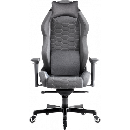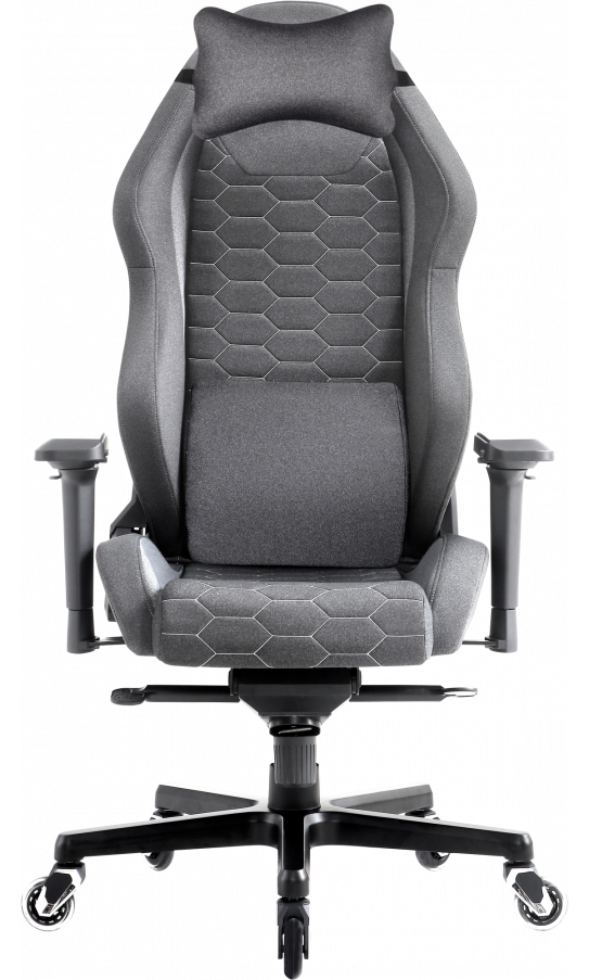 Спинка з можливістю максимального діапазону нахилу дозволяє легко підібрати положення – від прямого для роботи до повністю горизонтального для відпочинку. Модель має бічну підтримку, щоб сприяти правильному розташуванню в кріслі. Комплектація поперековою подушкою та підголівником допомагає зменшити навантаження на спину та шию, формуючи правильну посадку.