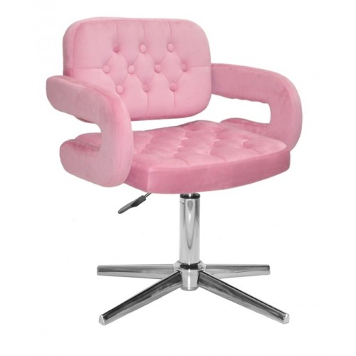 Гламурний стілець з підлокітниками Gor CH-Modern BASE на металевій хрестовині в стилі модерн, з поворотним механізмом і регулюванням висоти, за допомогою газового ліфта. Крісло Gor має декорування спинки та сидіння каретною стяжкою капітоне. М'яка спинка стільця має якісну бічну підтримку спини, а зручне сидіння та підлокітники допоможуть провести тривалий час із комфортом, сидячи у кріслі. Дизайн стільця гармонійно впишеться в інтер'єр Вашого будинку, апартаментів, офісу, салону краси, перукарні, бару, кафе, ресторану, готелю. За стилем крісло Гор підійде в інтер'єр у стилі лофт (loft), у стилях модерн та hi-tech. Крісло ідеально підходить для робочого місця офісного працівника, касира супермаркету як стілець майстра манікюру (педикюру).