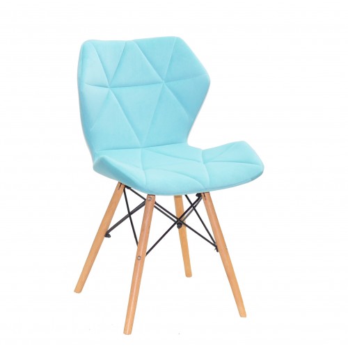 Ніжки стільця виготовлені з дерева в кольорі "бук" і металевих спиць. М'які спинка та сидіння оббиті якісною тканиною.