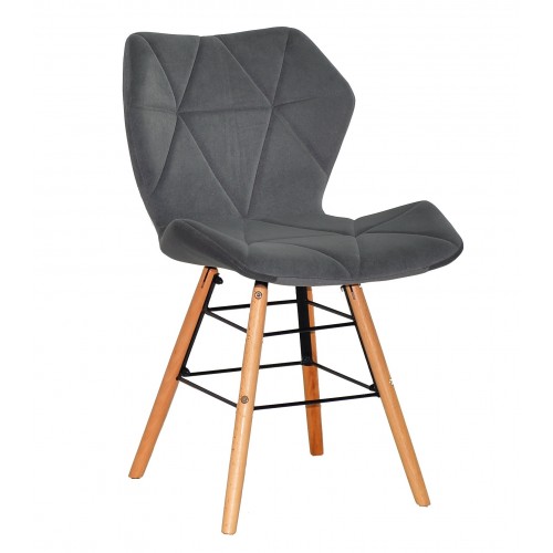 Ніжки стільця виготовлені з дерева в кольорі "бук" і металевих спиць.  М'які спинка та сидіння оббиті якісною тканиною.