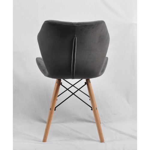 Ніжки стільця виготовлені з дерева в кольорі "бук" і металевих спиць.  М'які спинка та сидіння оббиті якісною тканиною.