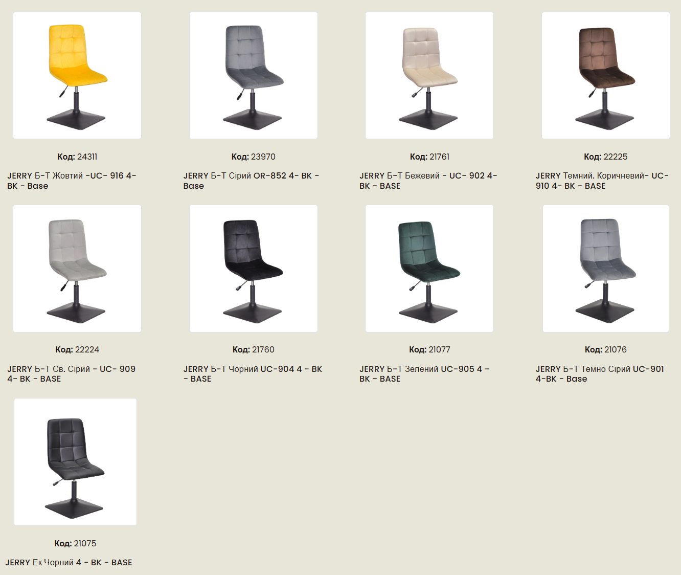 Стілець JERRY– стильна та сучасна модель, яка безумовно додасть вашому інтер'єру вишуканості та краси. Він буде прекрасною складовою будь-якої обідньої, вітальні чи офісної групи. Такий стілець зробить атмосферу приміщення більш піднесеною та гармонійною. Каркас та ніжки стільця виготовлені із міцного забарвленого металу. Завдяки стриманому дизайну та надійній конструкції стілець прослужить вам довгий час, не втративши свій бездоганний зовнішній вигляд.