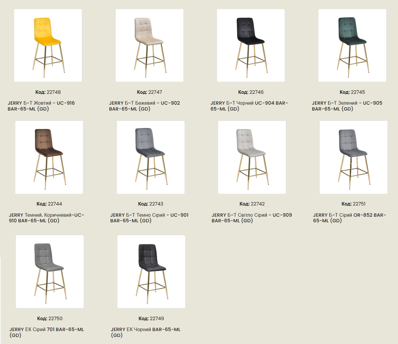JERRY Б-Т Світло Сірий - UC-909 BAR-65-ML (GD) напівбарний стілець/Джері (Джери)