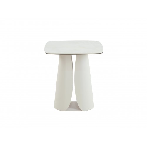 Легка металева основа, пофарбована в теплий колір айворі, підтримує елегантний силует і забезпечує конструкції стійкість без зайвої масивності. Компактні розміри (50×50 см, висота 56 см) дозволяють розташувати столик поруч із диваном або кріслом, не перевантажуючи простір.