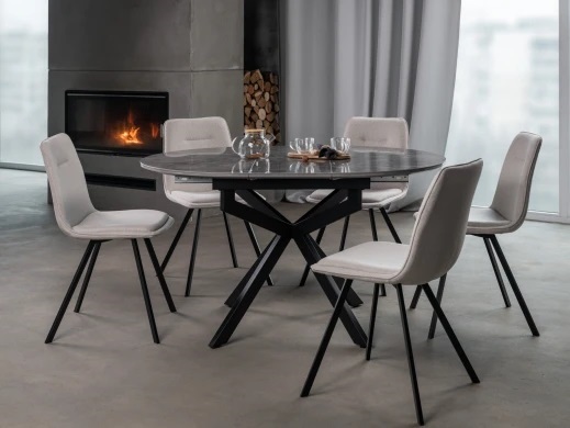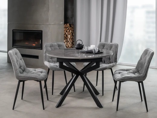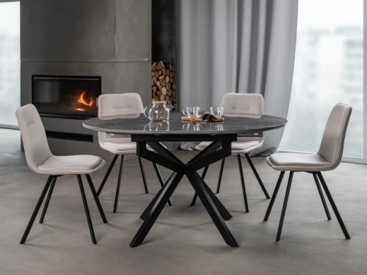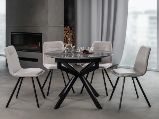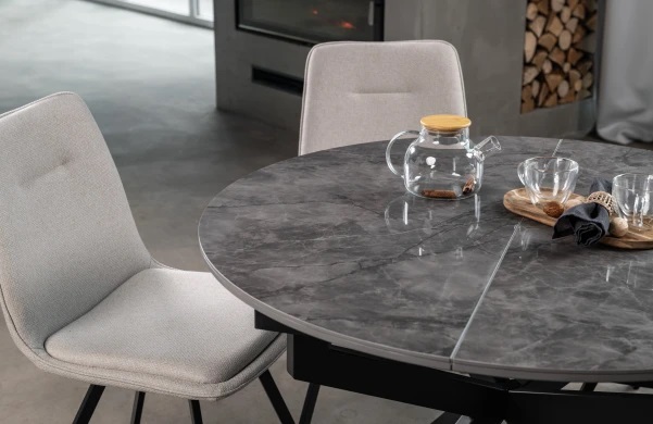 Завдяки механізму розкладки "книжка-автомат", стіл легко трансформується з компактного круглого діаметра 105 см у більш просторий овальний формат з максимальною довжиною 138 см. Це дозволяє використовувати його як у щоденних сімейних вечорах, так і для прийому гостей, забезпечуючи зручність і функціональність.