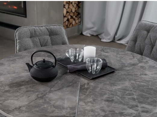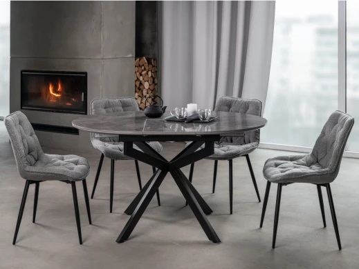 Керамічний стіл Офелія TML-1250 спайдер грей + чорний — це вишуканий меблевий елемент, який створює атмосферу сучасної розкоші та затишку. Його кругла стільниця виконана з глянцевої кераміки у благородному кольорі "спайдер грей", що імітує текстуру натурального каменю. Глибокі сірі відтінки з витонченими прожилками надають столу характерного шарму, який привертає увагу та гармонійно доповнює сучасні інтер’єри.