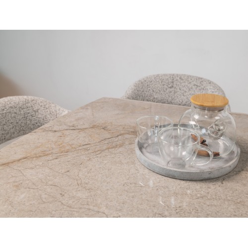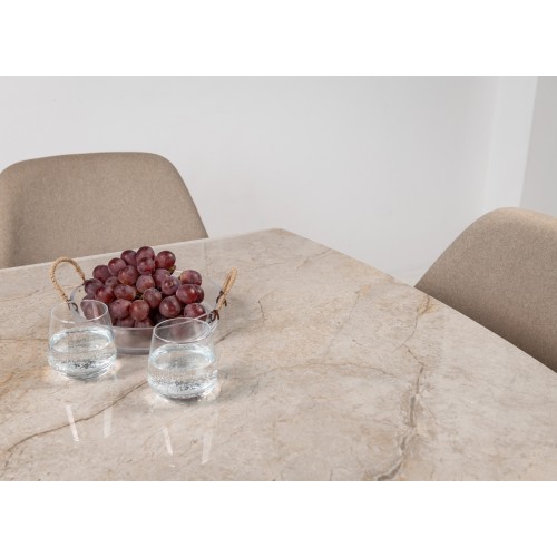 Основа стола виконана з фарбованого металу кольору капучино, що додає йому теплої і затишної атмосфери, одночасно підкреслюючи контраст зі стільницею. Така комбінація надає столу елегантного і сучасного вигляду, який стане чудовим доповненням будь-якого інтер'єру.