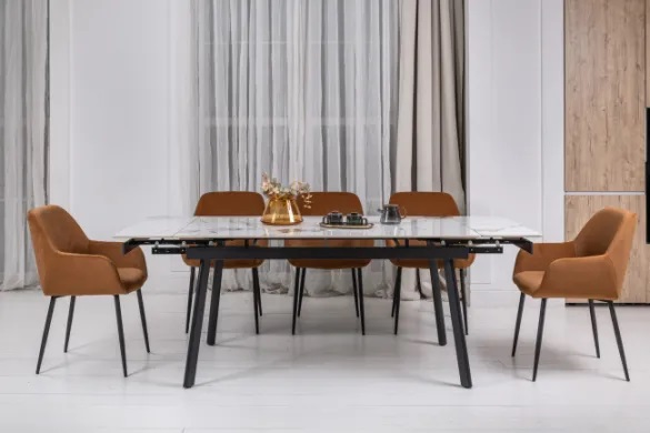 Функціональність моделі не поступається її дизайну. Завдяки продуманому боковому механізму стіл легко трансформується: у зібраному вигляді його довжина становить 150 см, а при розкладанні — цілих 210 см. Це дозволяє організувати простір під будь-які потреби — від камерної вечері до масштабного святкування.
