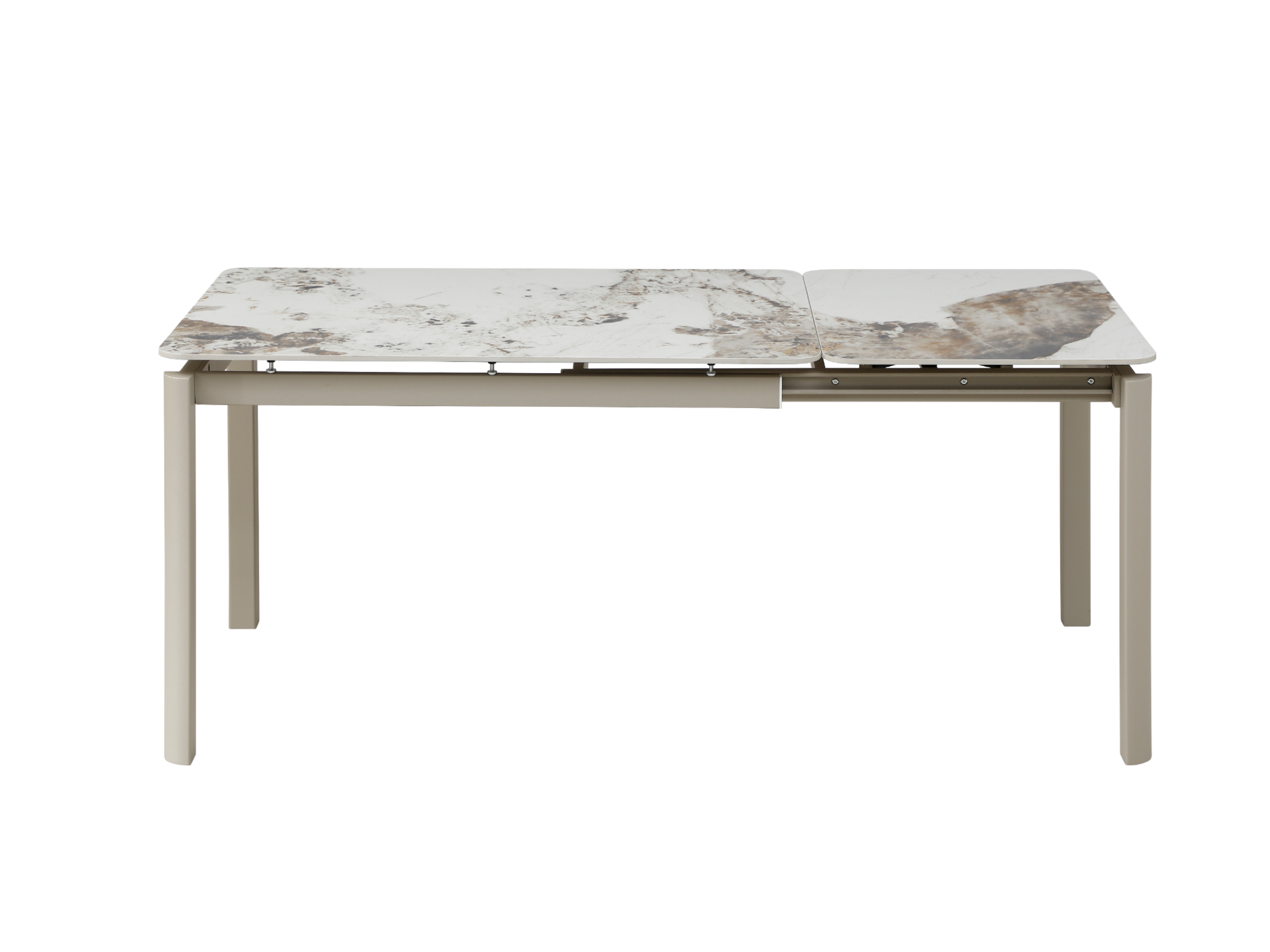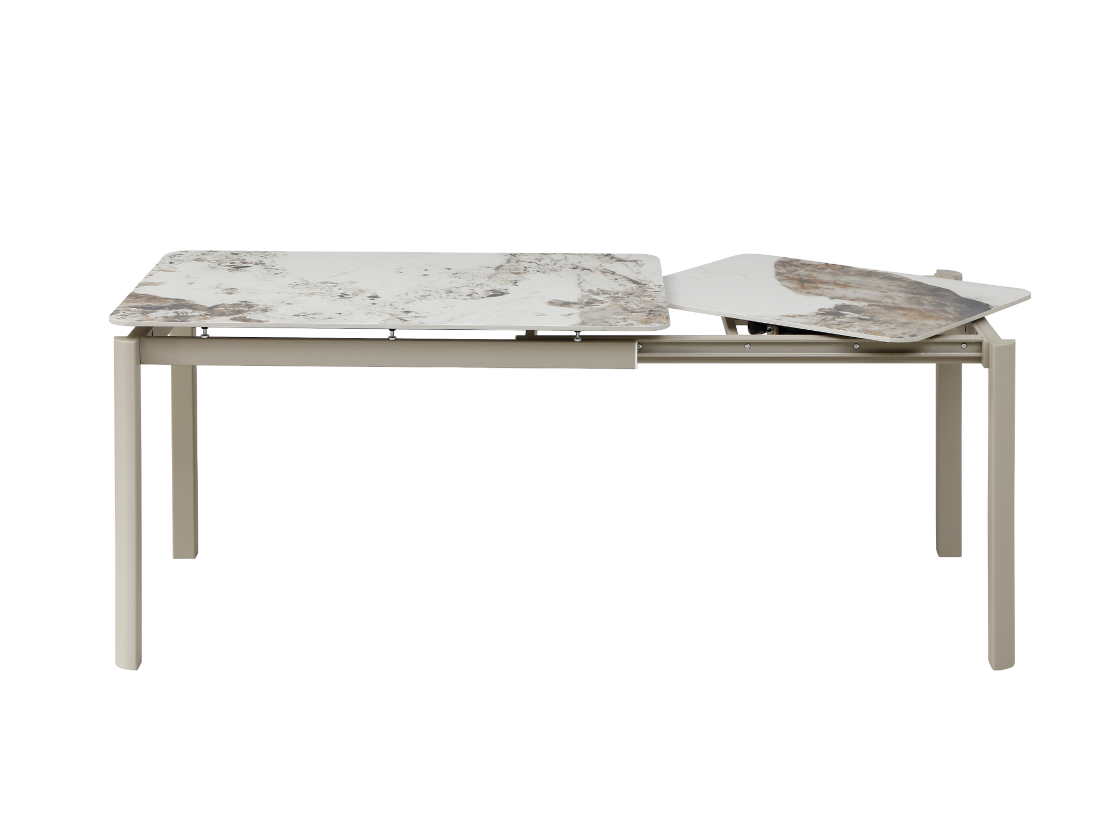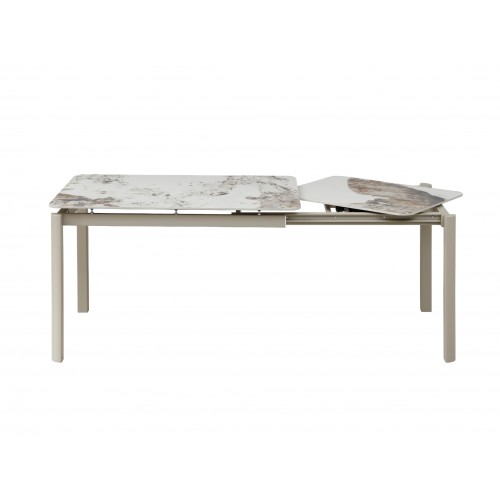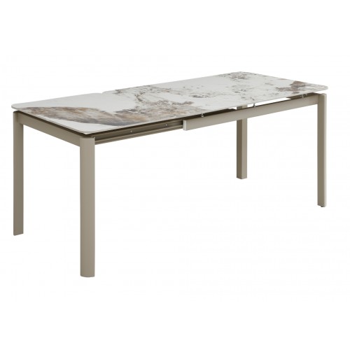 Глянцева керамічна поверхня не лише виглядає розкішно, а й відзначається високою практичністю. Вона стійка до температурних впливів і щоденного використання, що робить стіл ідеальним як для щоденних обідів, так і для прийому гостей. Приємний блиск поверхні підсилює ефект натурального каменю та додає інтер’єру елегантності.