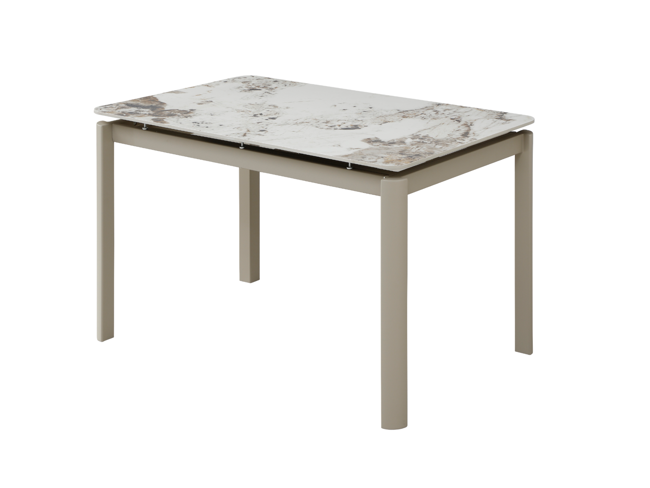Прямокутна форма столу є універсальною та зручною для організації простору. У складеному вигляді його розміри становлять 120×80 см, що ідеально підходить для компактних кухонь або їдалень. Завдяки боковому поворотному автоматичному механізму стіл легко трансформується до довжини 180 см, дозволяючи комфортно розмістити більше гостей без зайвих зусиль.