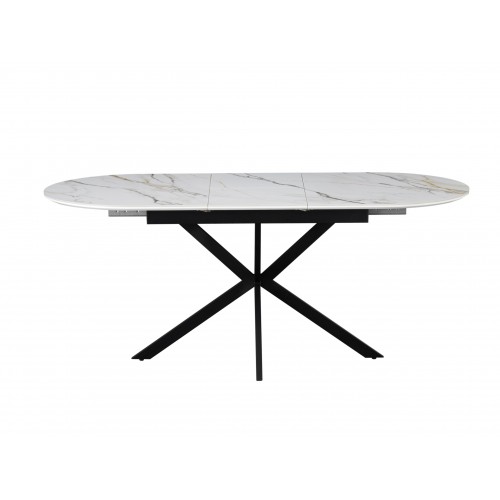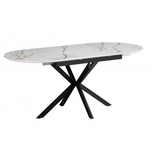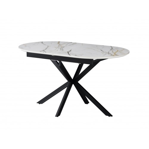 Керамічний стіл Верона TML-1335 калакатта голд + чорний — це вишукане поєднання елегантності, стилю та сучасних технологій. Його овальна форма додає м’якості лініям інтер’єру, а відтінок калакатта голд із благородними прожилками нагадує текстуру природного мармуру, створюючи відчуття розкоші та витонченості.