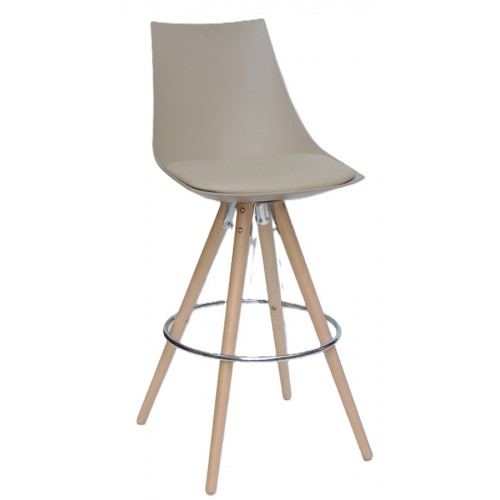 Барний стілець Клім не повертається навколо своєї осі, не регулюється за висотою, сидіння з суцільнолитого пластику поліпропілену. Табурет має дерев'яні букові ніжки та зручну металеву хромовану підніжку, по периметру ніг. На сидінні стільця є м'яка подушка з екошкіри, колір сидіння.