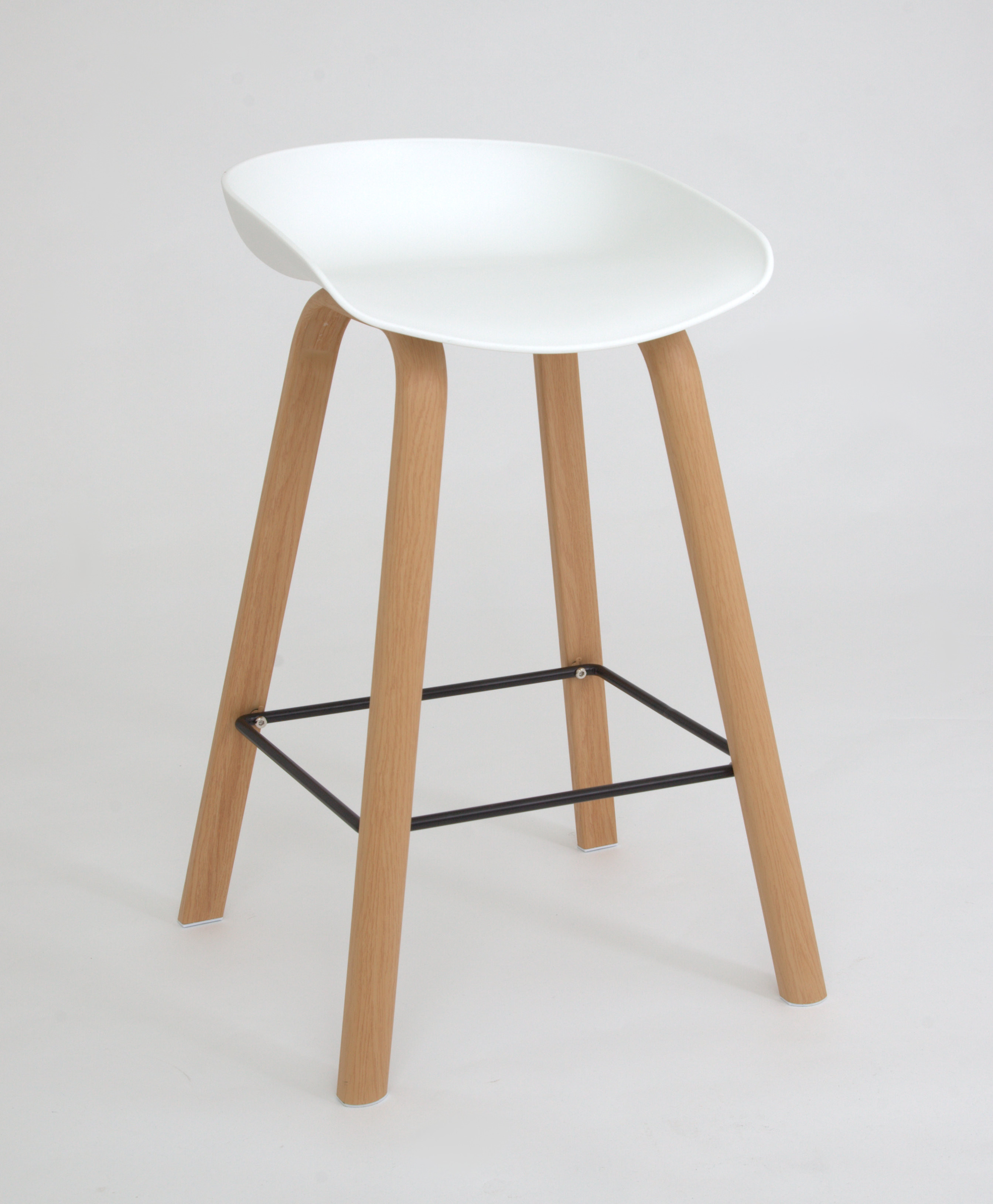 Барный стул (табурет) не поворачивается, не регулируется по высоте, сиденье из цельнолитого пластика ABS. Табурет имеет деревянные буковые ножки и удобную металлическую подножку по периметру.