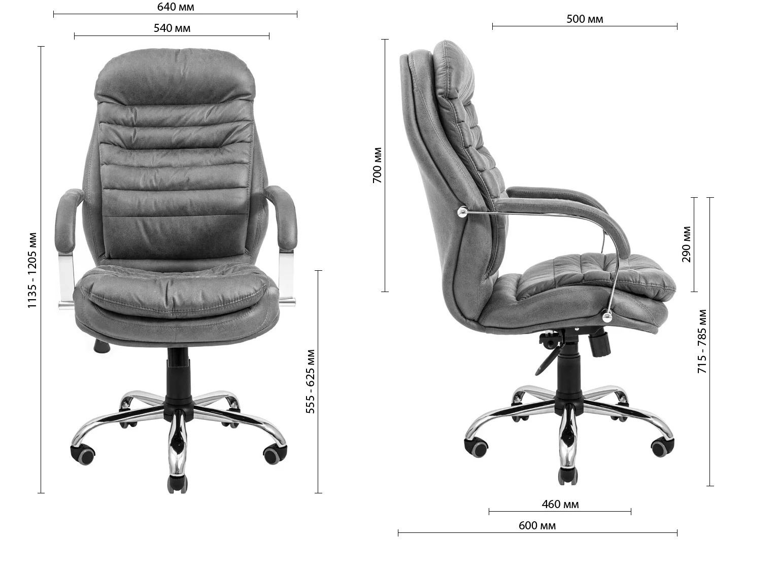 При комплектації "Хром" - крісло буде з хромованими підлокітниками та м'якими накладками, хрестовина хром.