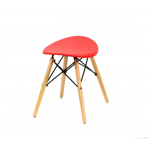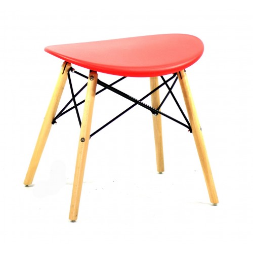 Сидіння – цільнолітне. Ніжки табурету дерев'яні, з'єднані металевими лозинами, забарвленими в чорний колір.