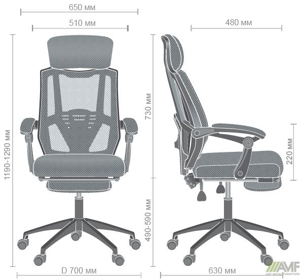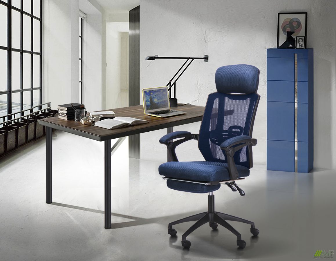 ОПИС Крісло AMF Art з колекції Smart - справжній витвір мистецтва, так як поєднує в собі сучасний мінімалізм і повний комфорт використання. Для повної релаксації і повноцінного відпочинку є не тільки можливість опустити спинку на 135 градусів, а й висувна підставка для ніг. На підлокітниках - м'які накладки. Ролики обгумовані і не залишать подряпин на підлозі. Зручний механізм дозволить вам налаштувати висоту крісла і положення спинки. Спинка з сітки, оббивка сидіння з тканини представлені в чорному або темно-синьому кольорі. Механізм Крісло оснащене сучасним механізмом Релакс. Цей механізм дозволяє змінити і зафіксувати кут нахилу спинки в будь-якому зручному положенні. У даній моделі спинка відкидається майже горизонтально підлозі. Правила догляду Крісла необхідно розміщувати в сухих, провітрюваних приміщеннях (при температурі повітря від + 5° C до + 25° C і відносній вологості повітря від 30% до 70%). Для максимально довгого збереження первісного вигляду крісел, необхідно берегти їх від потрапляння прямих сонячних променів і не ставити поряд з опалювальними приладами, так як через це їх колір може потьмяніти і змінитися структура поверхні. Бережіть підлокітники крісел від механічних пошкоджень: відрегулюйте висоту столу і крісла так, щоб підлокітники не терлися об стільницю або іншу тверду поверхню. Оббивка крісла довше збереже привабливий вигляд, якщо ви будете регулярно чистити її пилососом. Плями чистите негайно. Пролиту рідину можна витирати білими рушниками або спеціальною тканиною, що вбирає вологу. Металевий або пластиковий каркас потрібно протирати м'якою вологою тканиною з використанням спеціальних миючих засобів. Плями жиру або дрібні, ледь помітні подряпини можна відшліфувати миючими засобами для фарбованого металу.