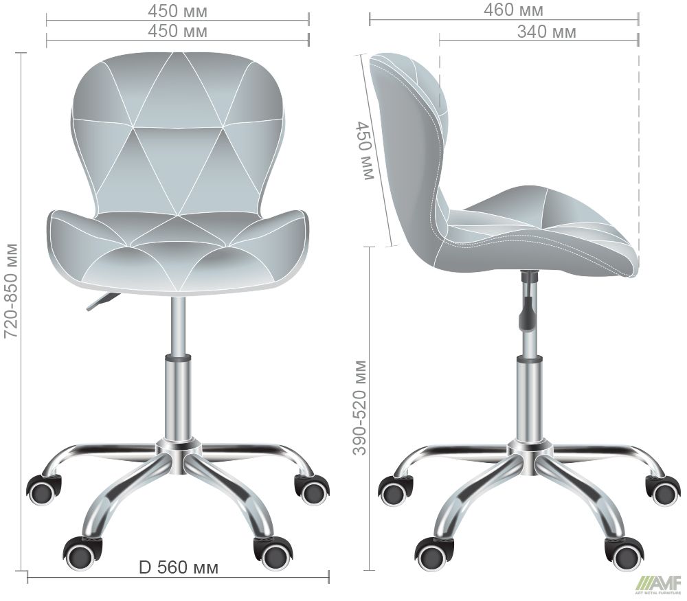 ОПИС Комп'ютерне крісло AMF Betani - стильне крісло, яке призначене для облаштування робочого місця персоналу, а також може бути встановлене в будинку. Металева опора та хрестовина виготовляються з хромованої сталі, під сидінням встановлений механізм регулювання висоти посадки. Цілісне сидіння і спинка виготовлені з поліпропілену, обтягнуті м'яким і зносостійким оксамитом. М'яка спинка та трохи закруглена форма сидіння дозволяють розміститися максимально зручно. Комп'ютерне крісло AMF Betani - це не тільки функціональність, модель також виконує декоративну функцію і стане яскравим акцентом в інтер'єрі будинку або офісу. Механізм Піастра - це вузол кріплення сидіння офісного стільця на газліфт, а також на неї може встановлюють вузол фіксації спинки крісла: перманент-контакт або овалина. Піастра має ручку, за допомогою якої можна налаштовувати висоту крісла або стільця, натискаючи на керуючий клапан газліфта, на який встановлюється піастра. Правила догляду Крісла необхідно розміщувати в сухих приміщеннях, що провітрюються (при температурі повітря від +5°C до +25°C і відносній вологості повітря від 30% до 70%). Крісла потрібно переносити, а не штовхати. Для максимально тривалого збереження первинного виду крісел, необхідно берегти їх від попадання прямих сонячних променів і не ставити поряд з опалювальними приладами, тому що через це їх колірможе потьмяніти та зміниться структура поверхні. Бережіть підлокітники крісел від механічних пошкоджень: відрегулюйте висоту столу та крісла так, щоб підлокітники не терлися об стільницю або іншу тверду поверхню. М'яка оббивка крісла довше збереже привабливий вигляд, якщо ви регулярно чистити оббивку пилососом. Пляму чистіть негайно. Пролиту рідину можна витирати білими рушниками або спеціальною тканиною, що вбирає вологу. Металевий каркас слід протирати м'якою вологою тканиною з використанням спеціальних миючих засобів. Плямні жири або дрібні, трохи помітні подряпини можна відполірувати засобами для фарбованого металу. ХАРАКТЕРИСТИКИ
