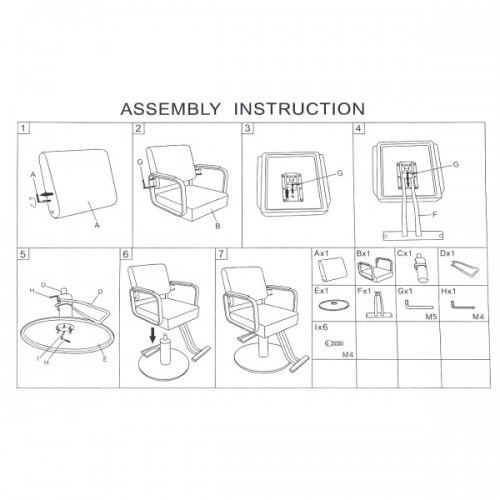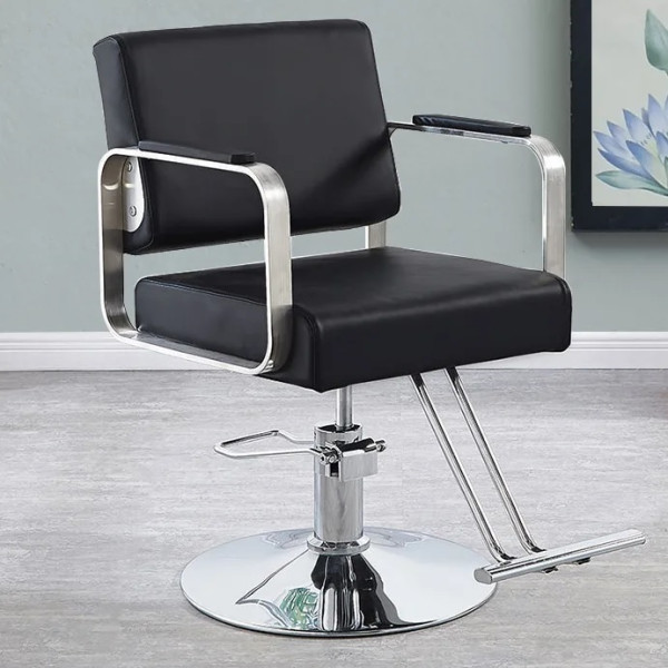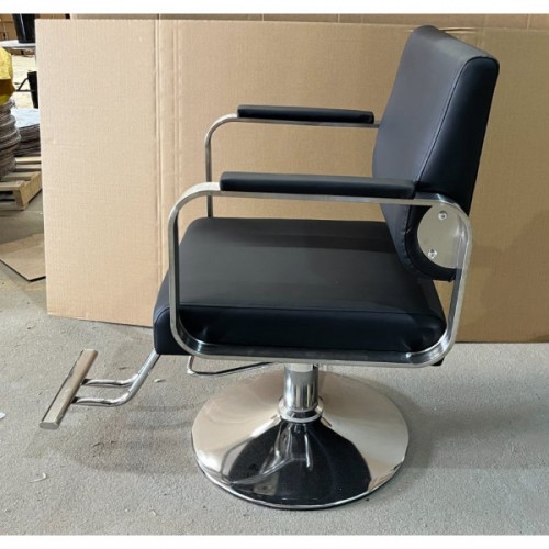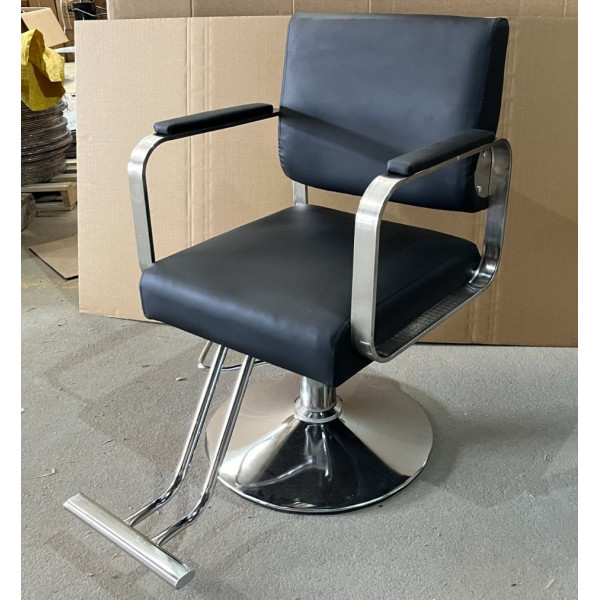 Крісло для перукарень, салонів краси, зручне м'яке сидіння, матеріал екошкіра, регулюється по висоті за допомогою гідравлічного підйомного механізму, хромована фурнітура, на блині діаметр якого 52 см, висота крісла від 84 до 94 см, висота посадки від 44 см до 54 см, ширина сидіння 50 см, ширина сидіння з підлокітниками 60 см, ширина сидіння між підлокітниками 47 см, глибина сидіння 54 см, ширина спинки 48 см, висота подушки на сидінні 12 см. Кількість у коробці: 1 од.
