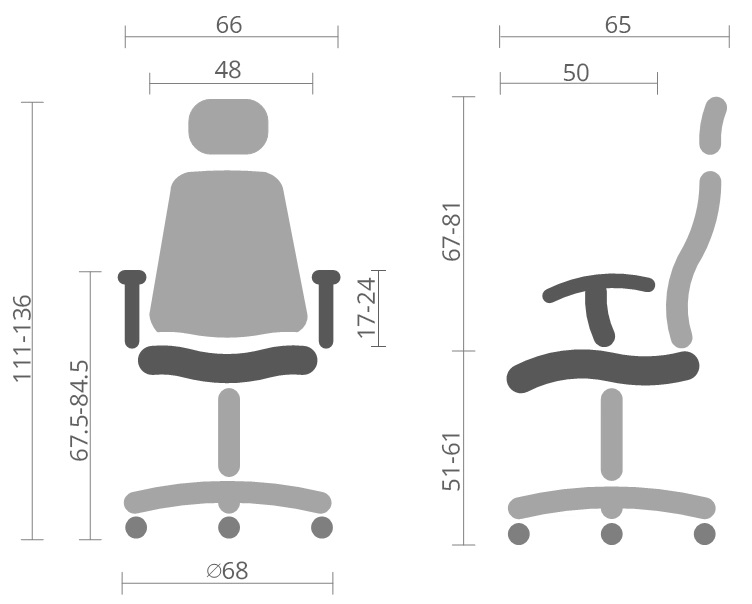 Висота підлокітників, см 67.5-64.5