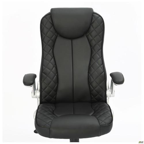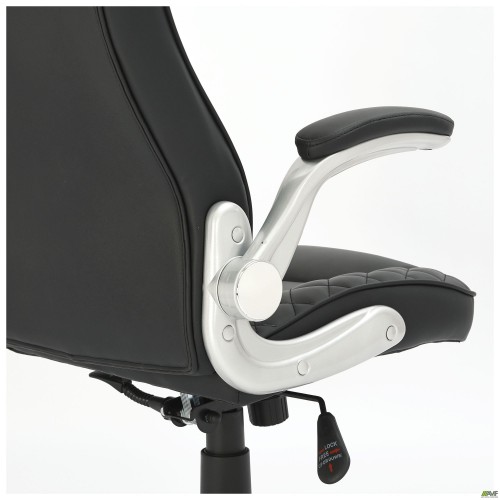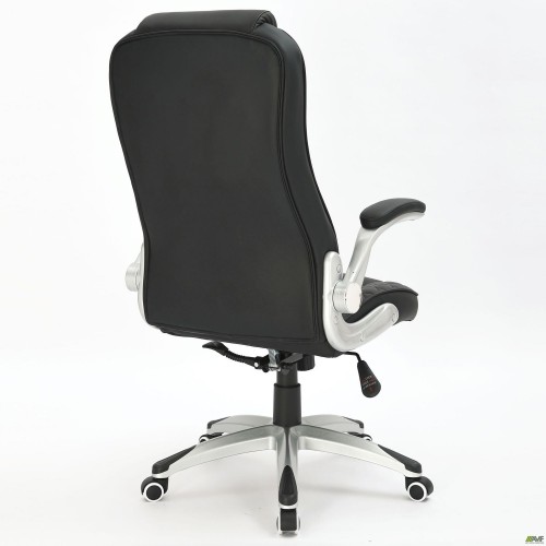 Висока ергономічна спинка, покрита шкірозамінником, стійким до вологи та механічного тертя.