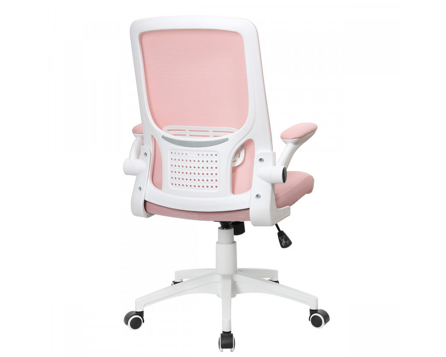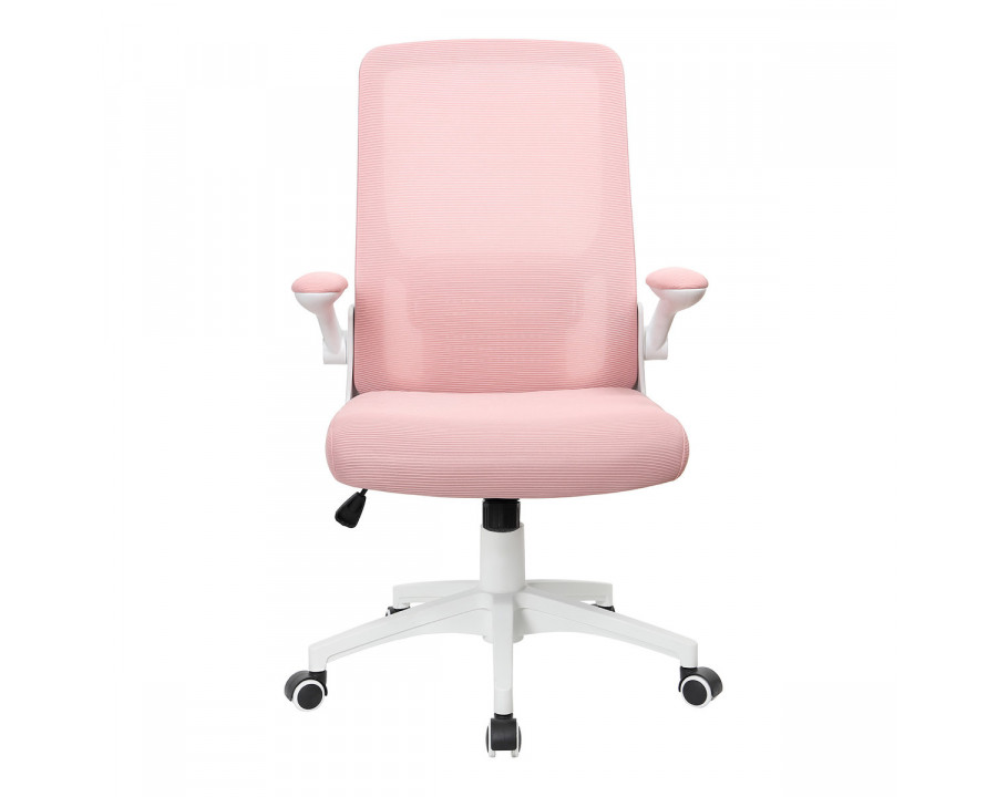 Матеріал крісла: мембранна сітка, Колір: рожевий Каркас: білий Додаткова інформація: механізм TILT, рухомі (відкидні) підлокітники, високоякісний газліфт, міцна нейлонова основа, безшумні нейлонові колеса, максимальне навантаження 120 кг Розмір коробки: 63*28*59 см