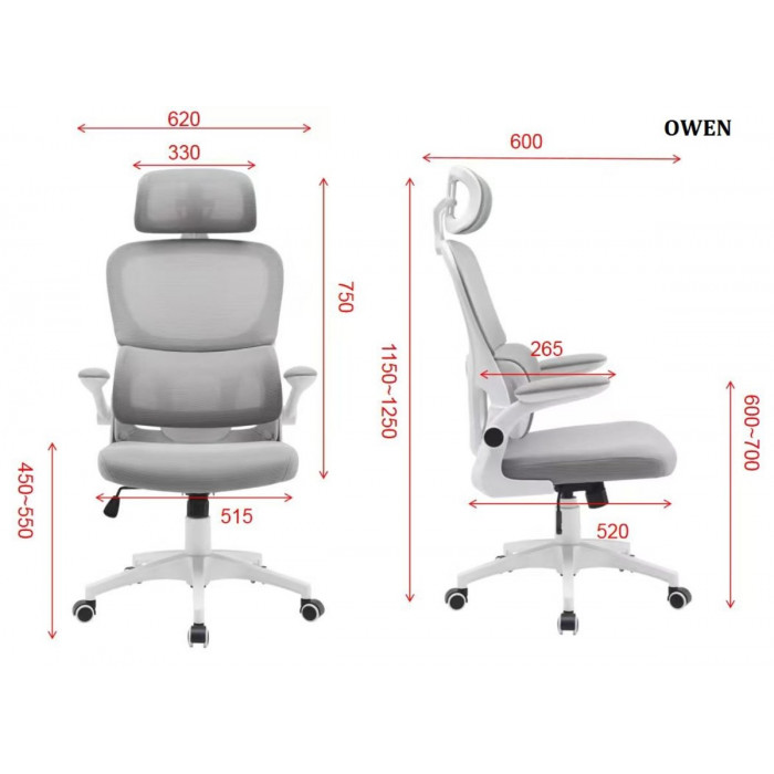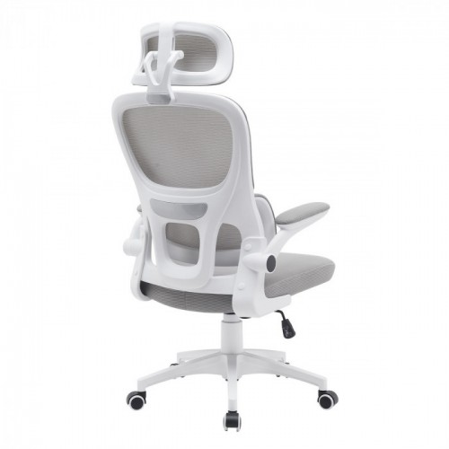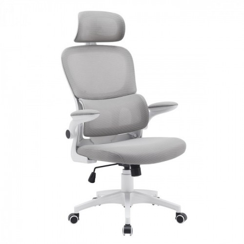 Матеріал крісла: Мембранна тканина-сітка, Колір: сірий, Каркас: білий Додаткова інформація: механізм TILT, рухомі (відкидні) підлокітники, високоякісний газліфт, міцна нейлонова основа, безшумні нейлонові колеса, максимальне навантаження 120 кг Розмір коробки: 61*31,5*59 см