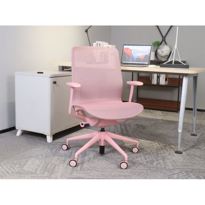 Крісло офісне REGINA рожева сітка / рожевий каркас/Регина