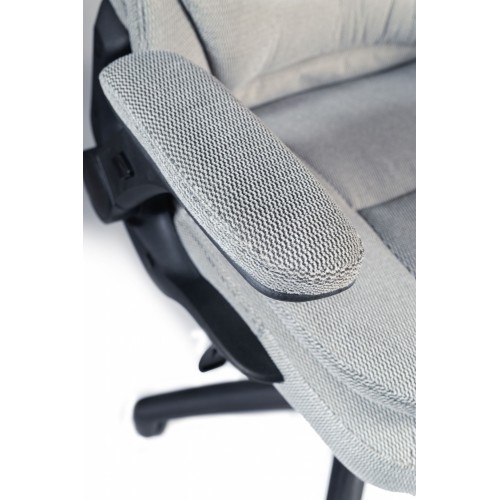 Конструкція крісла виконана з міцних та практичних матеріалів, що гарантує тривалий термін служби навіть за інтенсивної експлуатації. Ергономічна форма спинки та сидіння забезпечує зручну посадку та ефективну підтримку спини протягом усього робочого дня. Для додаткового комфорту передбачені зручні підлокітники з м'якими накладками, а також вбудований м'який підголовник, що підтримує шию і знижує навантаження.