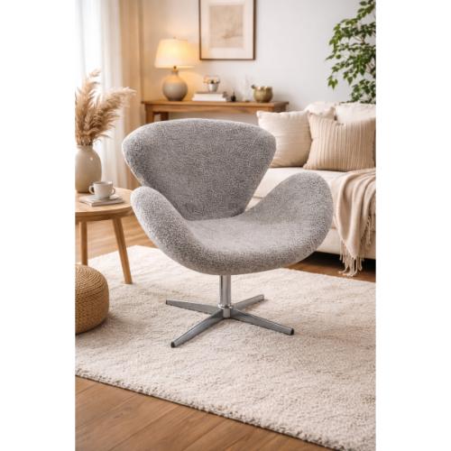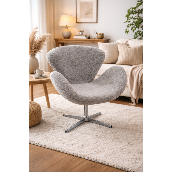Крісло Сван у тканині букле з регулюванням висоти сіре