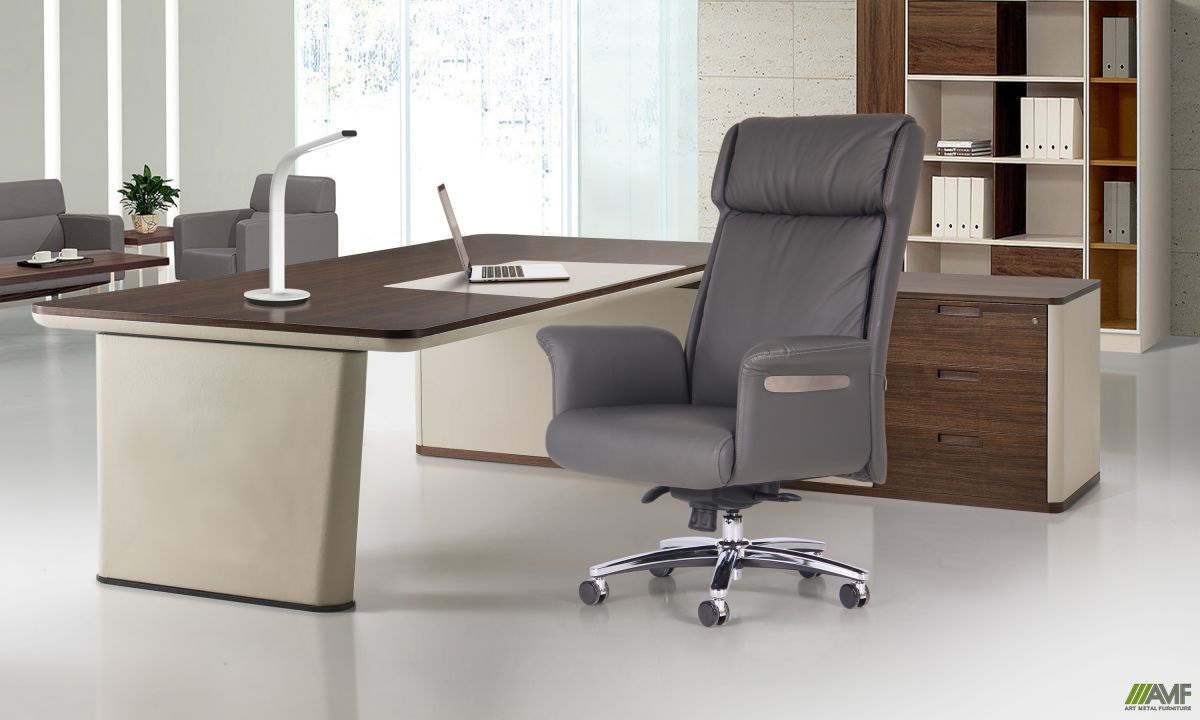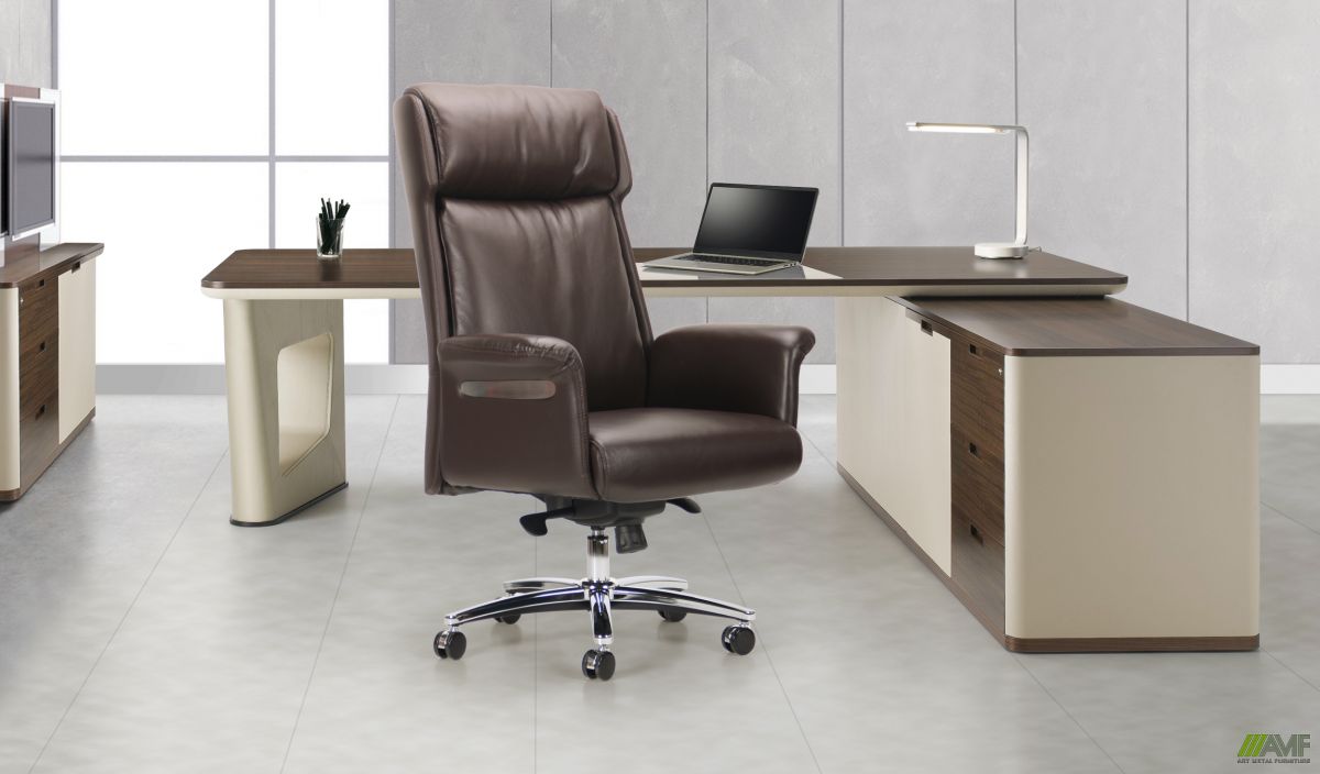 ОПИС Крісло для керівників AMF Truman - це новий яскравий представник в сегменті дорогих офісних крісел. Класичний стиль і використання натуральних матеріалів - кожна деталь крісла AMF Truman говорить про людину, яка цінує елегантність і комфорт. Робоча поверхня крісла виготовлена з натуральної шкіри. Як наповнення для робочої поверхні використовується пінополіуретан високої щільності і пух-перо. Задня частина крісла і підлокітники виконані зі шкірозамінника екстра-класу. Крісло має хромовану хрестовину, яка оснащена PU - ролики з алюмінієвими вставками. Максимальне навантаження на виріб - 150 кг. Стиль, елегантність і шарм крісла AMF Truman не залишить байдужими навіть самих строгих цінителів, а висока спинка забезпечить зручність і комфорт перебування і дозволить насолоджуватися робочим процесом. Механізм Механізм має фіксацію в 4-х положеннях, регулювання жорсткості гойдання і висоти сидіння. Шкіра комбінована Для оббивки виробу використовується комбінація з двох матеріалів. Для передньої частини використовують гладку високоякісну натуральну шкіру, задня частина виконана з якісного високоміцного шкірозамінника. Натуральна шкіра дуже практична і красива. Такої гладкості домагаються за допомогою напилення на шкури спеціальних засобів з природних смол і добавок. При цьому мікропори на шкірі не забиваються, і вона продовжує «дихати», що неймовірно комфортно під час сидіння на ній. Задня частина - Кожзамінник PU створюється за інноваційними технологіями і складається з декількох шарів. Два нижніх виготовлені з натуральної шкіри стандартної вичинки, яка зберігає свою майже нульову гігроскопічність і повітропроникність. А верхній шар - це поліуретан, який надає матеріалу відмінні естетичні характеристики. Правила догляду Крісла необхідно розміщувати в сухих, провітрюваних приміщеннях (при температурі повітря від + 5° C до + 25° C і відносній вологості повітря від 30% до 70%). Для максимально довгого збереження первісного вигляду крісел, необхідно берегти їх від потрапляння прямих сонячних променів і не ставити поряд з опалювальними приладами, так як через це їх колір може потьмяніти і змінитися структура поверхні. Бережіть підлокітники крісел від механічних пошкоджень: відрегулюйте висоту столу і крісла так, щоб підлокітники не терлися об стільницю або іншу тверду поверхню. Оббивка крісла довше збереже привабливий вигляд, якщо ви будете регулярно чистити її пилососом. Плями чистите негайно. Пролиту рідину можна витирати білими рушниками або спеціальною тканиною, що вбирає вологу. Металевий або пластиковий каркас потрібно протирати м'якою вологою тканиною з використанням спеціальних миючих засобів. Плями жиру або дрібні, ледь помітні подряпини можна відшліфувати миючими засобами для фарбованого металу.