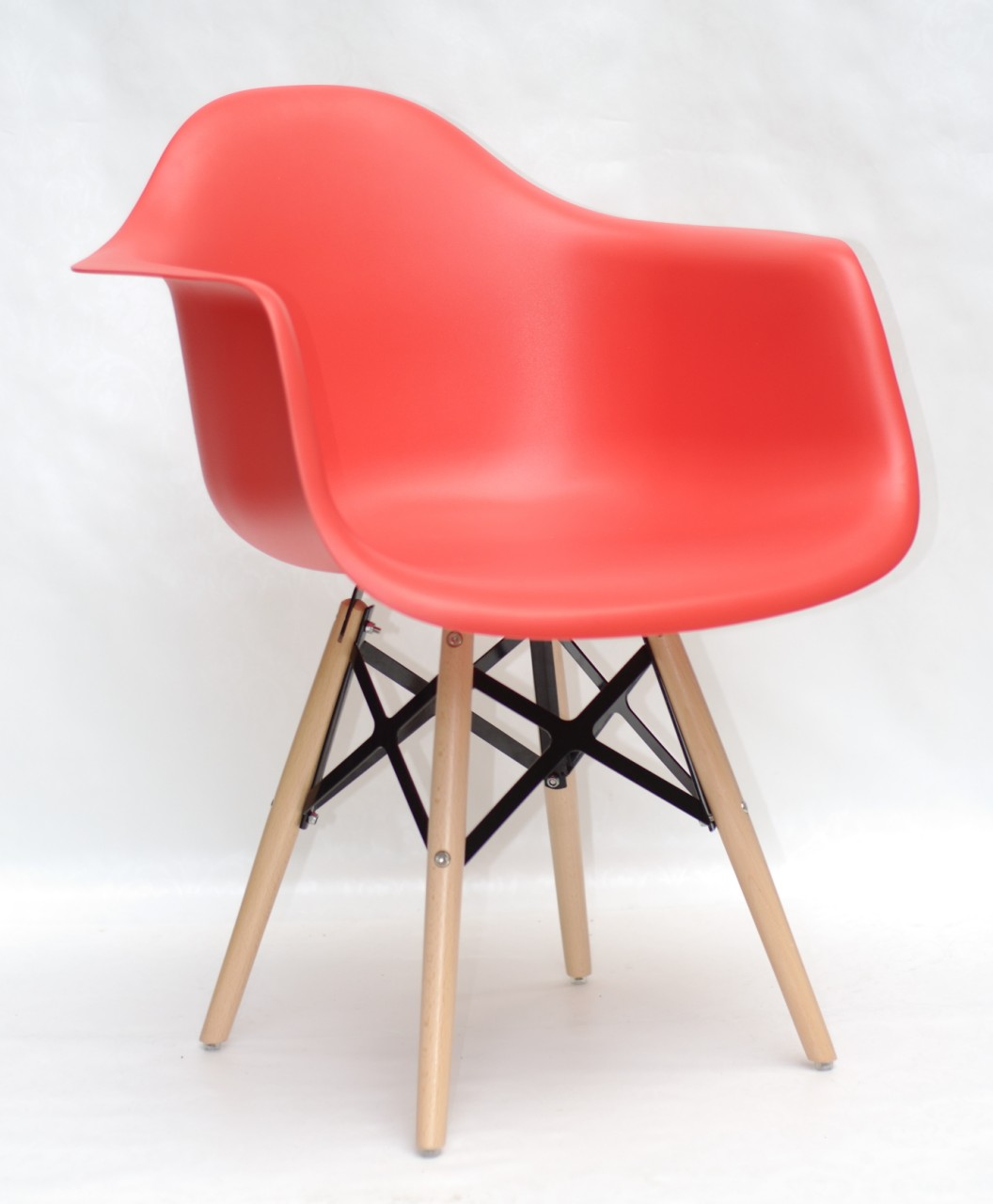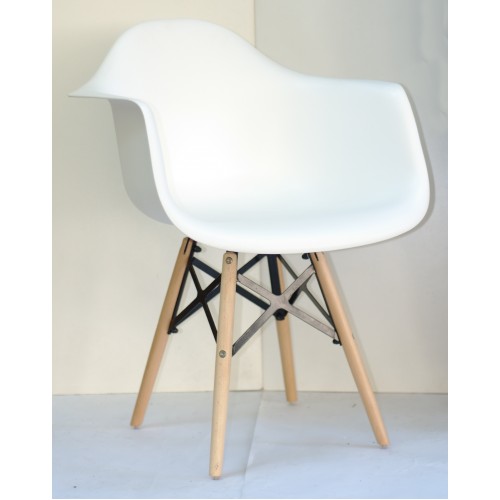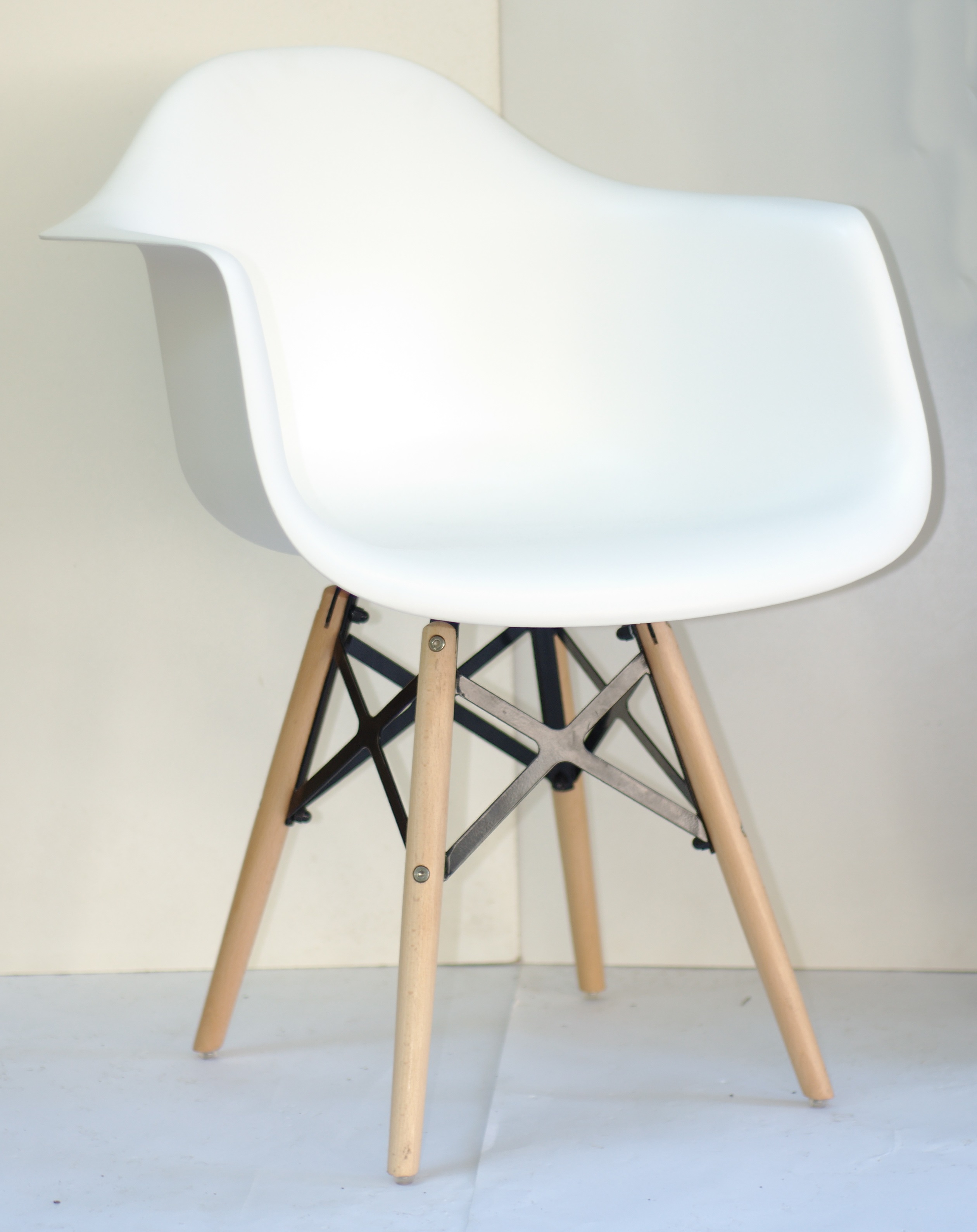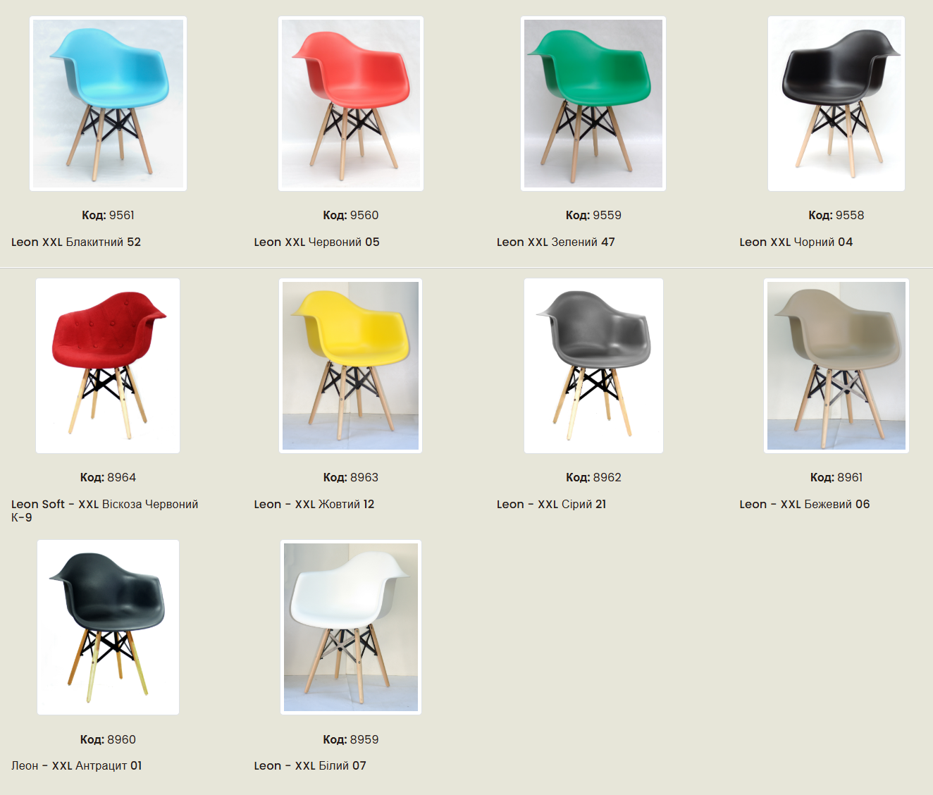 Крісло Leon прозоре акрилове - результат тривалих поліпшень моделі Eames DAR Armchair, яку придумали й розробили дизайнери Charles and Ray Eames. Ніжки стільця виготовлені з хромованого металу. Сидіння глибоке, зручне, спинка і підлокітники крісла плавно вигнуті, для того щоб максимально правильно і комфортно підтримувати спину завдяки зниженню навантаження на спину і стегна. Крісло Eames DAR Armchair transparent підходить за висотою до обіднього столу, ніжки стійкі і, завдяки силіконовим накладкам, не деформують підлогу.